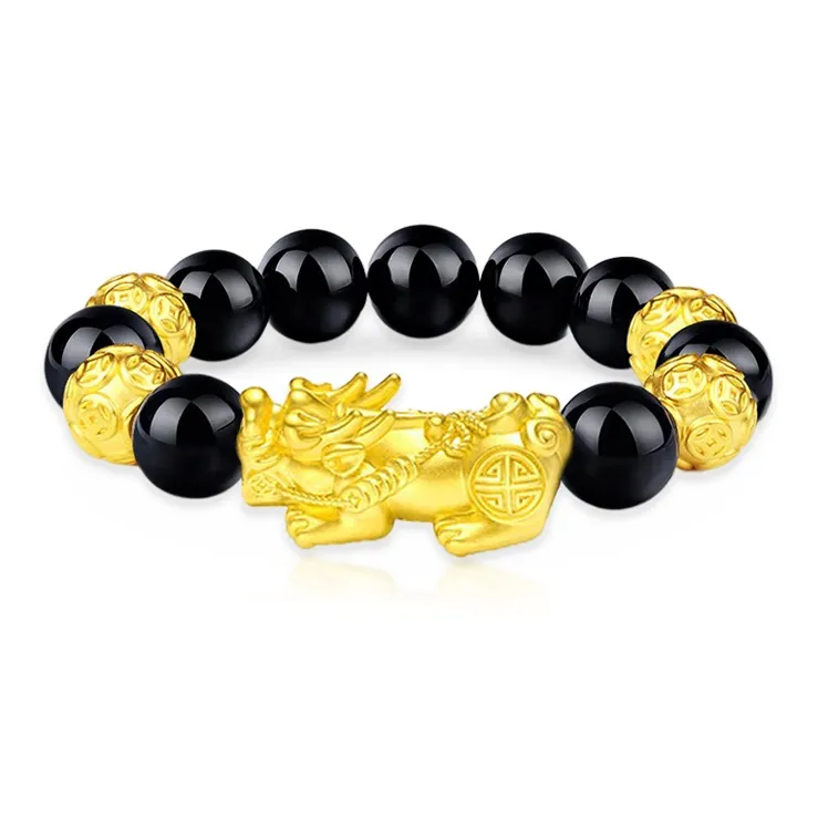 TRUE ME Золотой SHEEN Обсидиан Браслеты Китайское благоприятное животное Браслет с бусинами Унисекс