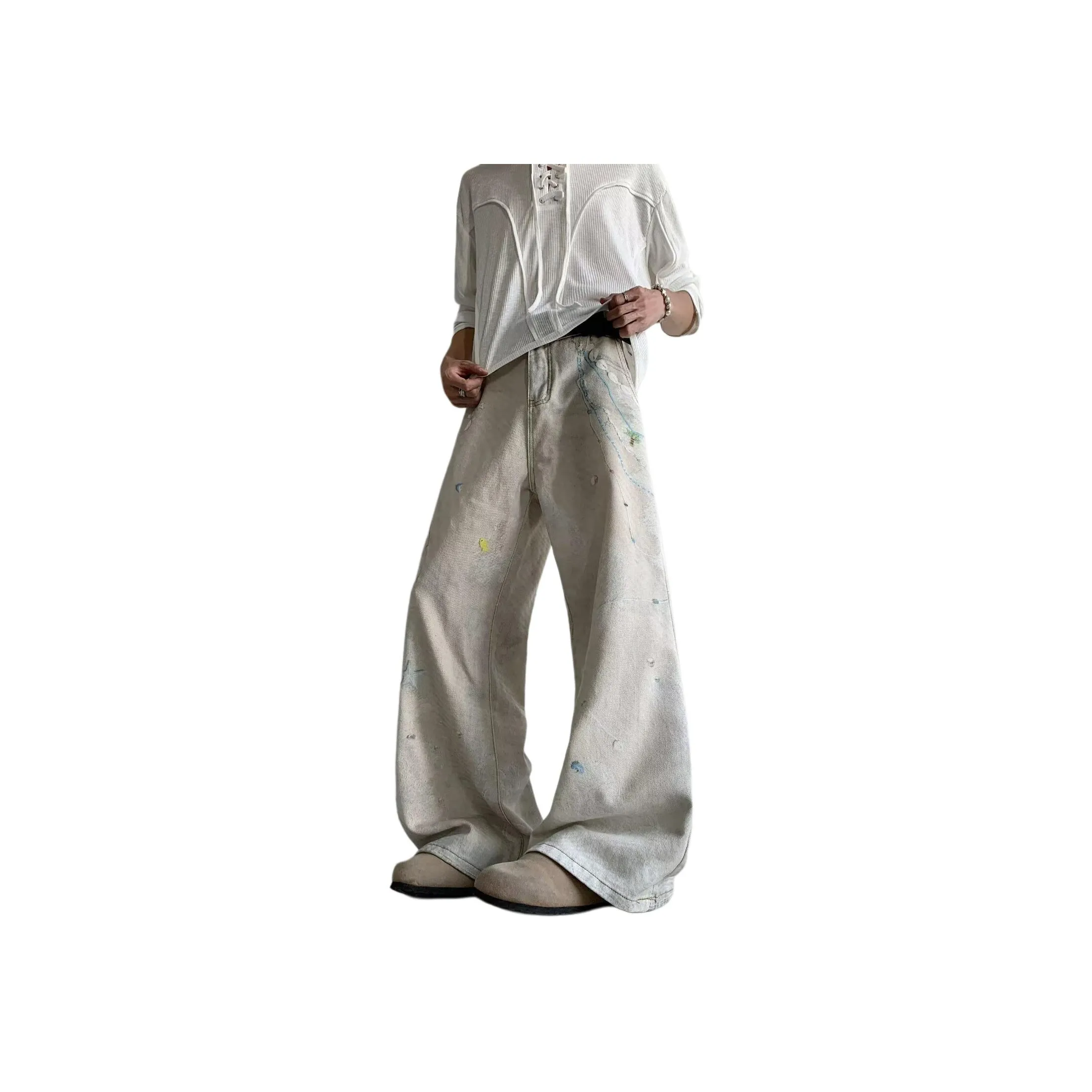 NRXX Мужская одежда Модный Джинсы Позиционирование стиля Цепочка Подвеска Принт Симулированные кляксы чернил Американский уличный стиль Винтаж Мужской