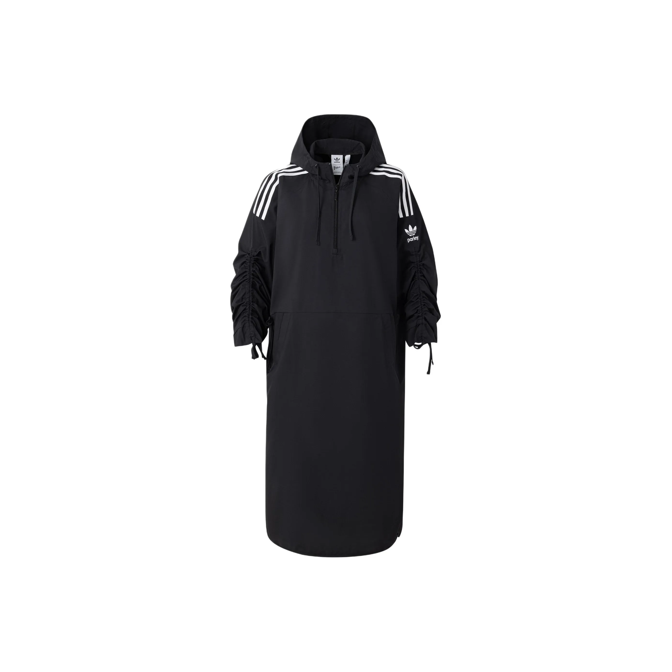 Крой просто отличный! На мой рост 162 см и вес 54 кг размер M сел идеально, подчеркивая фигуру. Ткань средней плотности, идеально подходит для весны, осени и лета, и практически не мнется. Этот наряд удачно сочетает традиционные элементы китайского ципао с современным спортивным стилем. Воротник-стойка с регулируемым шнурком выглядит изысканно и оригинально, а длину можно подстроить под свои предпочтения. Классический логотип "Трилистник" и боковые полосы — фирменные элементы Adidas, которые добавляют образу стильности.