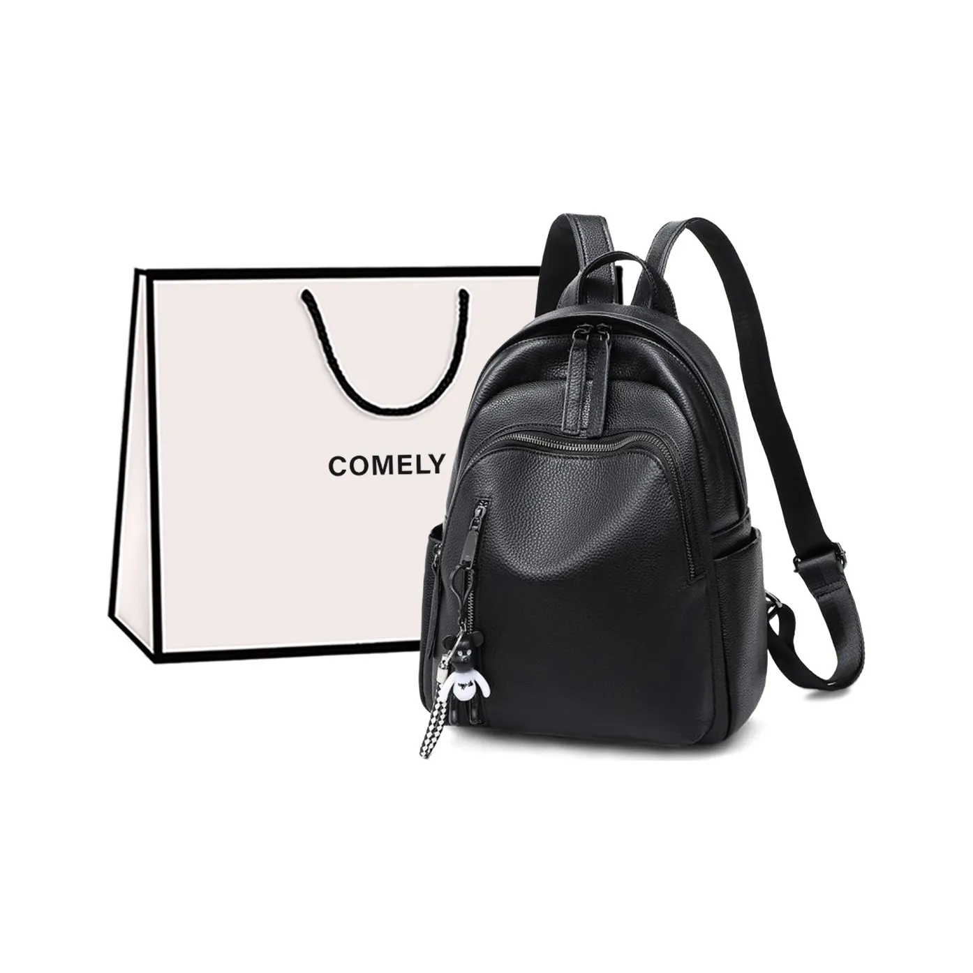 Рюкзак COMELY из коровьей кожи в черном цвете - это стильный и практичный выбор для деловых женщин. С размерами 10.2*5.9*12.6 дюйма, он имеет отделение для мелочей и удобные ручки. Этот рюкзак сочетает в себе стиль и функциональность.