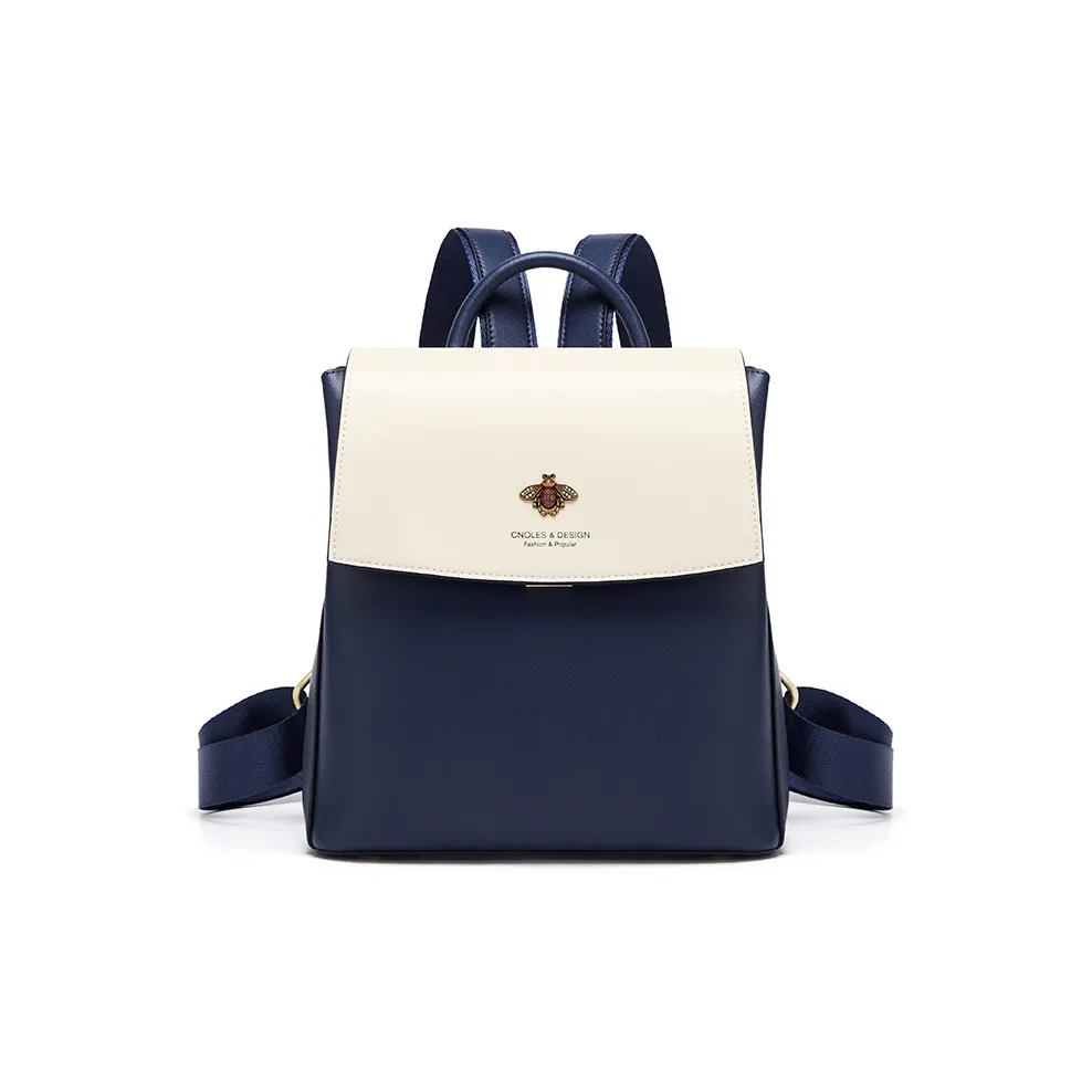 CNOLES Коровья кожа Путешественный рюкзак Женский Экрю и Синий