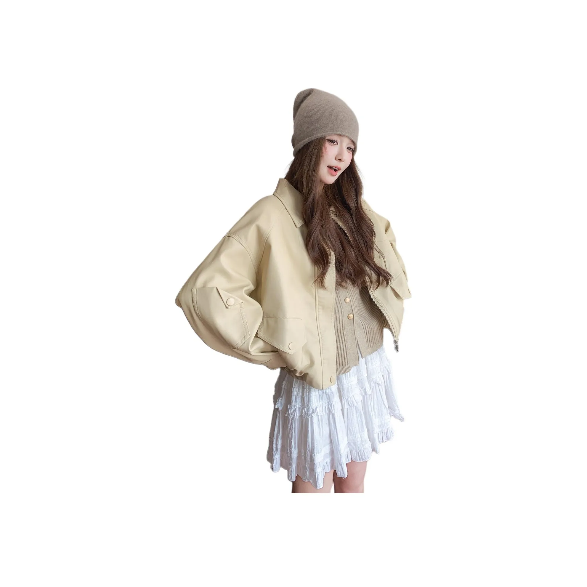 MM Бежевый Женские Кожаные Куртки