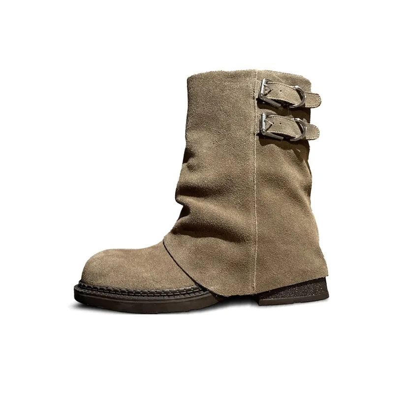 Замшевые ботильоны WUJI в цвете хаки с плоским каблуком идеально подходят для осени и зимы. Они имеют удобное закрытие и стильный дизайн, что делает их универсальным выбором для повседневной носки. Эти ботильоны легко комбинируются с различными стилями одежды.