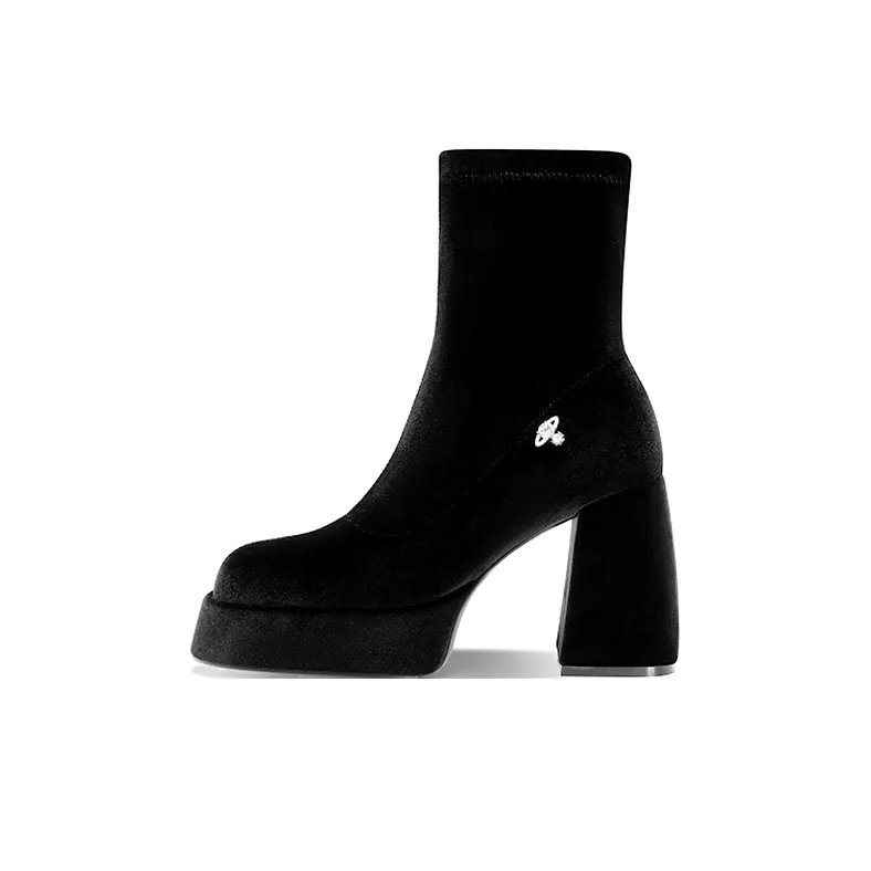 FVVO Rocksta Длинный HAIRED HIGH Топ Толстый SOLED Ботинки Ботильоны Средний каблук Унисекс