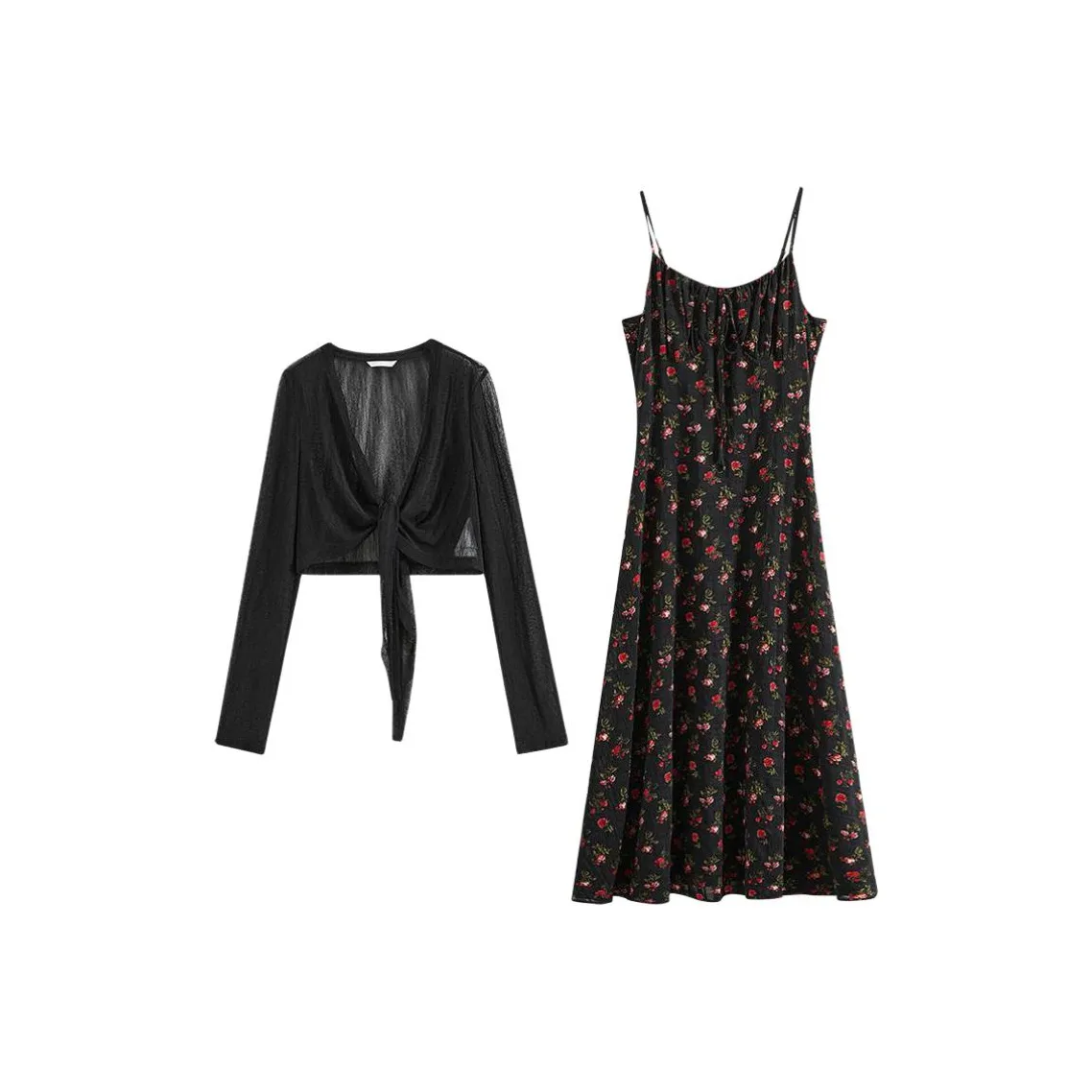 MARIE·COCO Черный топ + Юбка Женские Комплекты с юбкой - Этот комплект от MARIE·COCO включает в себя стильный топ и юбку, что делает его идеальным выбором для летних мероприятий. С цветочным узором и умеренной толщиной, он обеспечивает комфорт и стиль.