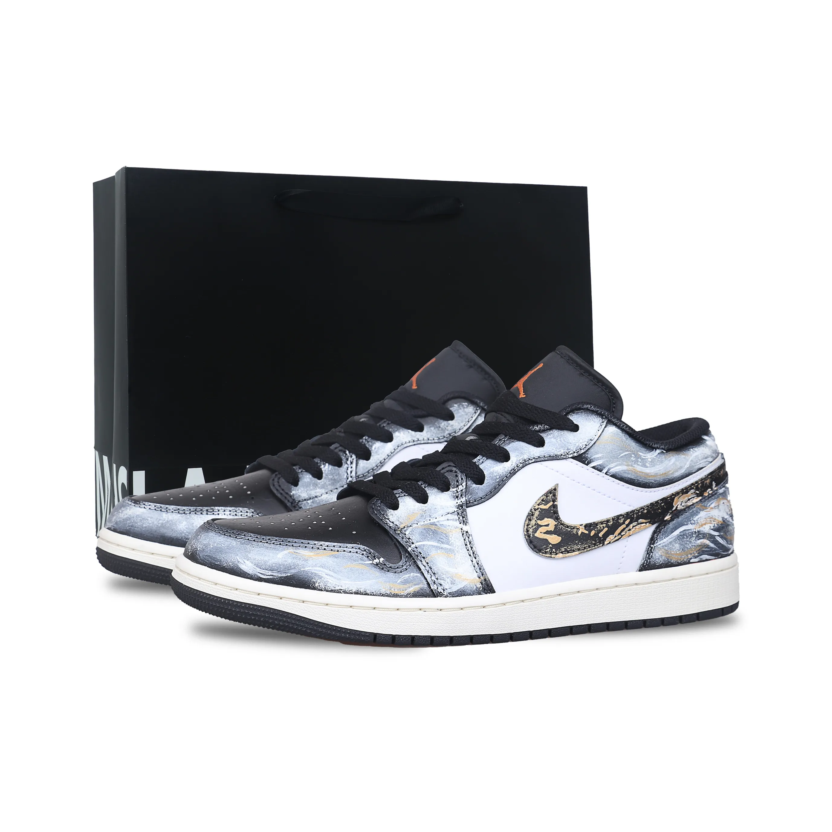 Jordan Air Jordan 1 Амортизация Поддержка Низкий Верх Винтажные Баскетбольные Кроссовки Унисекс Черный Золото