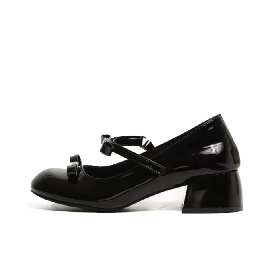 FOXER Грубый каблук Мэри Джейн Женские Туфли Черные