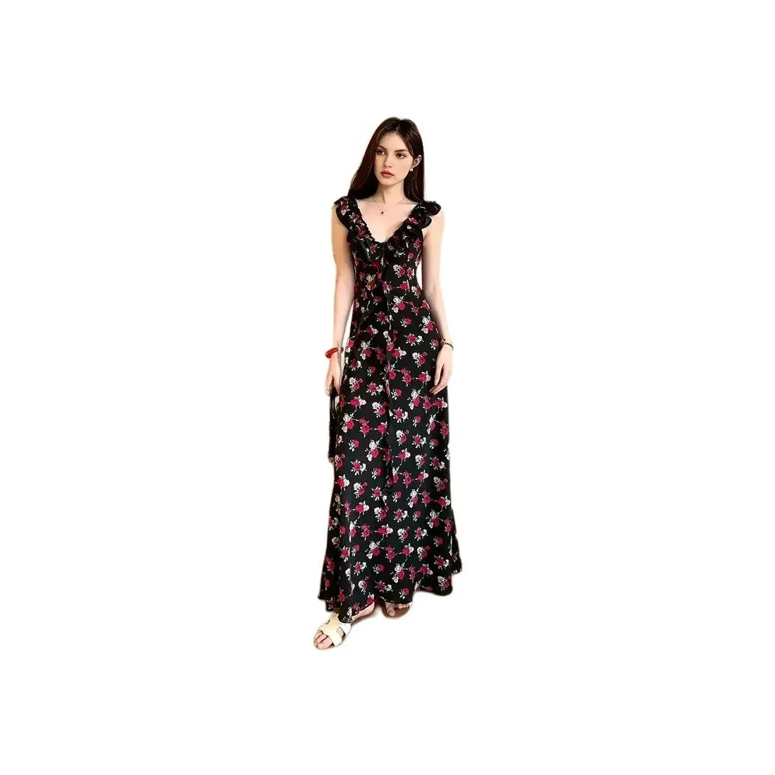Слиплатье от XIANGYING с цветочным принтом станет отличным дополнением вашего гардероба. Изготовлено из 100% полиэстера, оно легкое и удобное. Это платье идеально подходит для летних вечеринок или романтических свиданий благодаря своему элегантному дизайну и мягкому материалу.