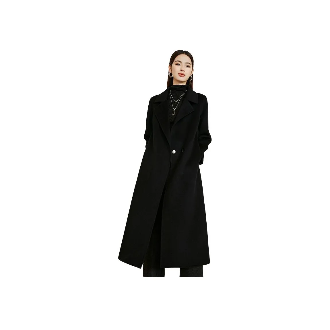 AMII Черное Женское Пальто - это элегантное пальто, выполненное из 100% шерсти. Оно идеально подходит для весны, осени и зимы, благодаря своей умеренной толщине и стильному дизайну с шнуровкой. Это пальто станет вашим любимым элементом гардероба.