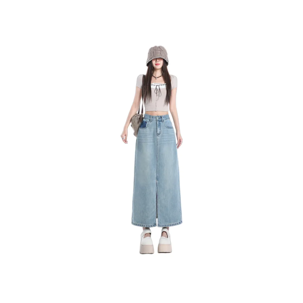 Розовый, сапфирово-синий, женские, джинсовые, длинные, юбки
