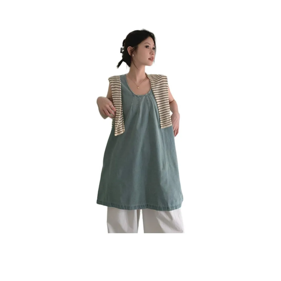 MORii Светло-синий Женские Платья без рукавов - это идеальный выбор для летних дней. Изготовленное из 100% полиэстера, это платье обеспечивает комфорт и стиль. С его простым, но элегантным дизайном, оно подходит для различных мероприятий, от пикников до вечеринок. Платье имеет умеренную толщину и легко надевается благодаря пуловеру. Оно станет отличным дополнением к вашему летнему гардеробу.