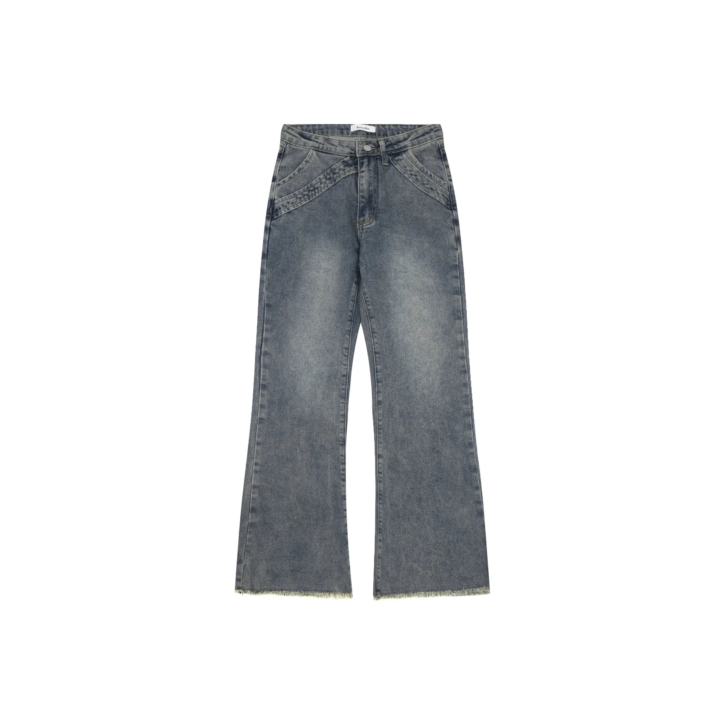 YICHEN Water Ripple Корова Ледяной синий [Прямой крой Буткат] Унисекс Джинсы