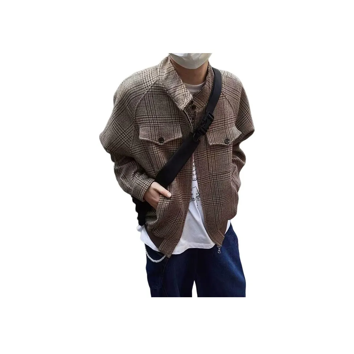 Куртка SZSX - это стильный выбор для городских прогулок и путешествий. Изготовленная из прочного полиэстера, она защищает от ветра и обеспечивает комфорт. Уникальный узор в гусиную лапку и дроп-рукава делают её универсальной для различных образов. Эта куртка также включает в себя сумку для покупок.