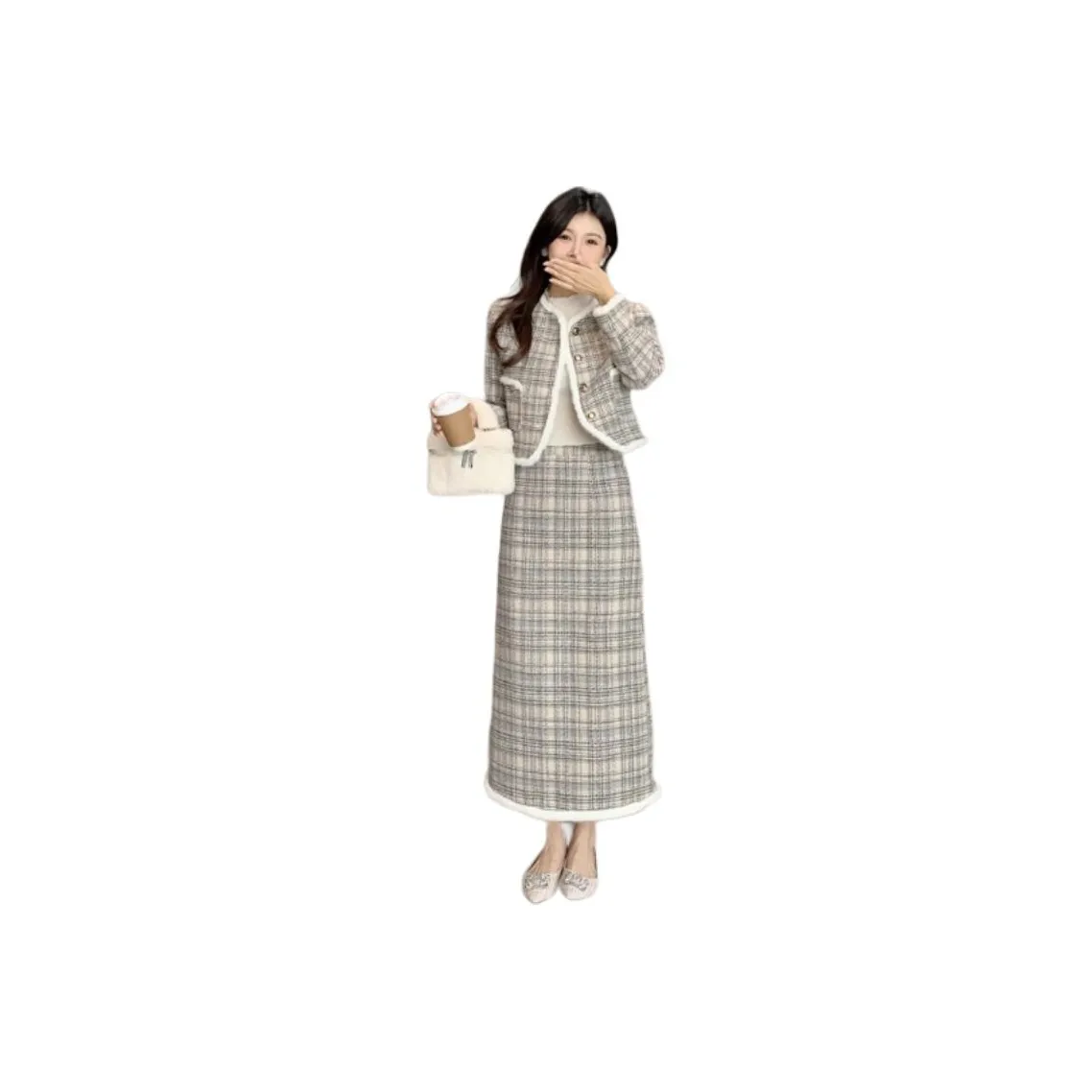 Комплект с юбкой от GOSO выполнен из утолщенного материала и подходит для весны, осени и зимы. Он имеет стильный клетчатый принт, что делает его идеальным для создания модного образа.
