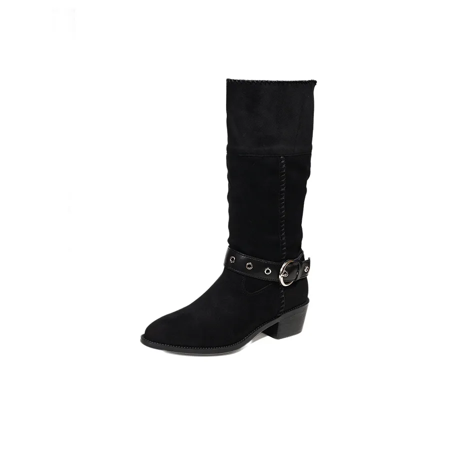Сапоги AFJI с острым носком и низким каблуком идеально подходят для осени и зимы. Они выполнены из замши и имеют резиновую подошву, что делает их удобными для повседневной носки.