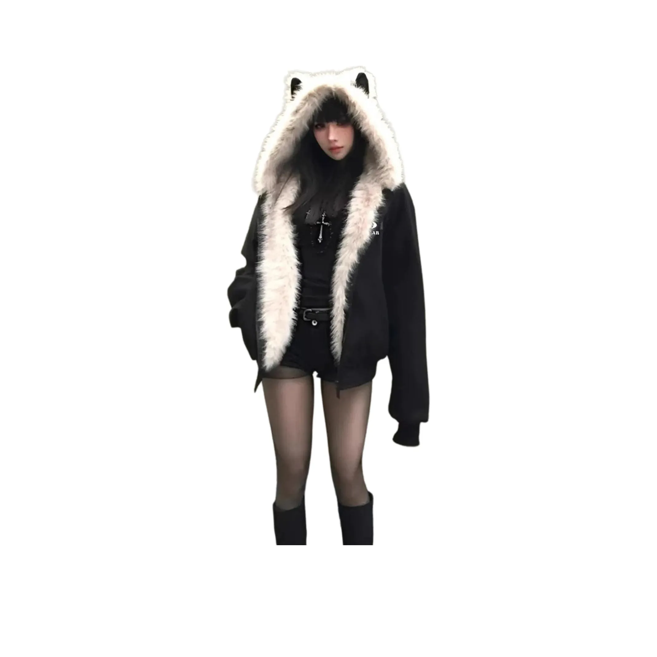 POVIT Черный Furry Кошка Ухо Гора Резьба Унисекс Пуховики