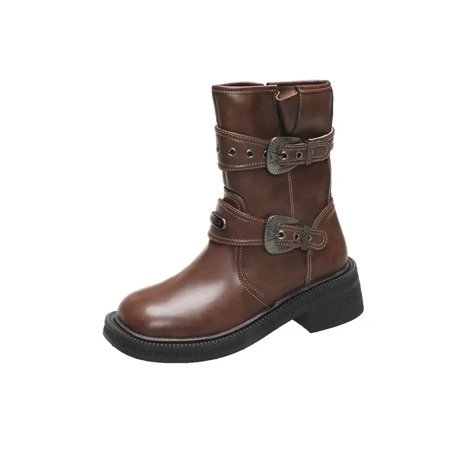 Puppytown Британский стиль Грубый каблук MID Ботинки на голень Женские