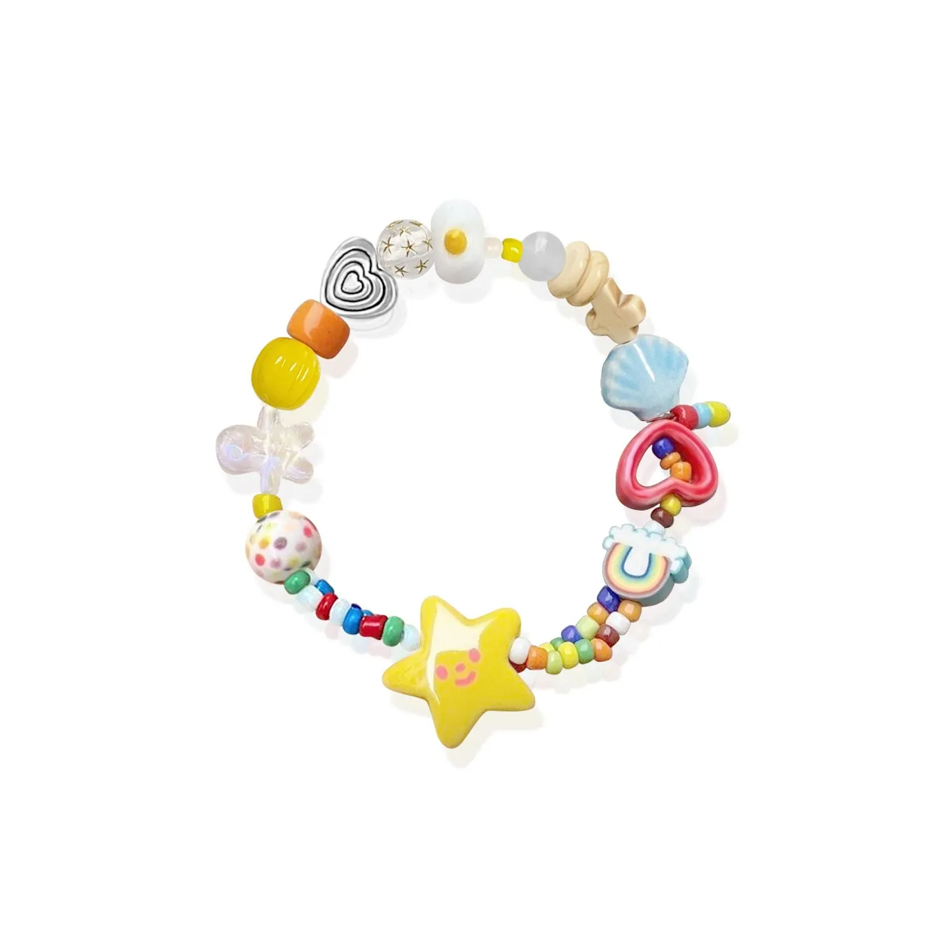 Браслет от Crafts Women выполнен из сплавов, керамики и смолы, длина цепочки составляет 16+3 см. Он представлен в многоцветном исполнении с узорами в виде звезд, луны и сердца. Упакован в коробку с подарочным пакетом, что делает его отличным вариантом для подарка. Этот браслет идеально подходит для создания уникального стиля и дополнит любой наряд.