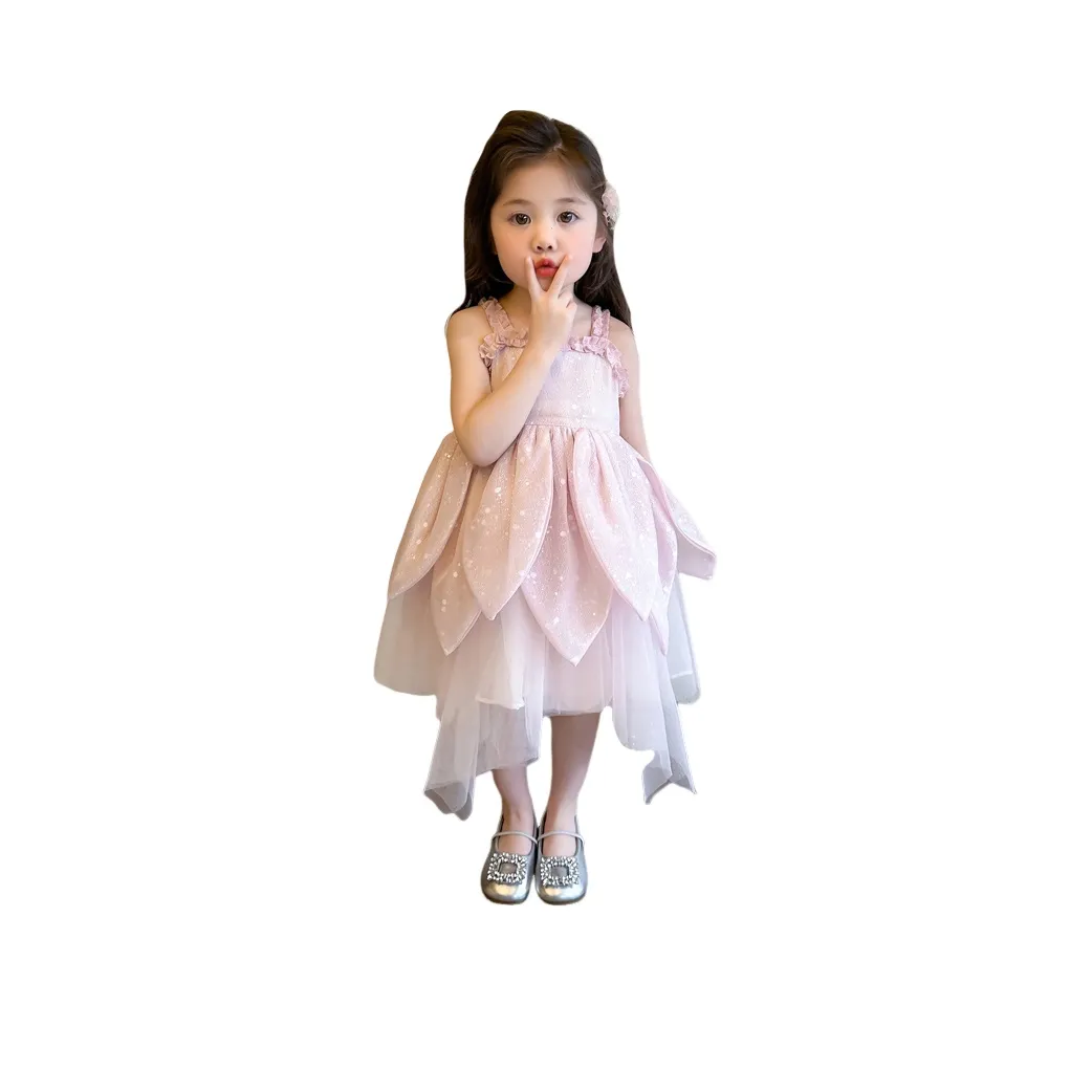 TONYBEAR 2025 Платье Милый Детский Сладкий Стиль Мода Рукав Буф Тонкий Платье Для Школьного Возраста Женский