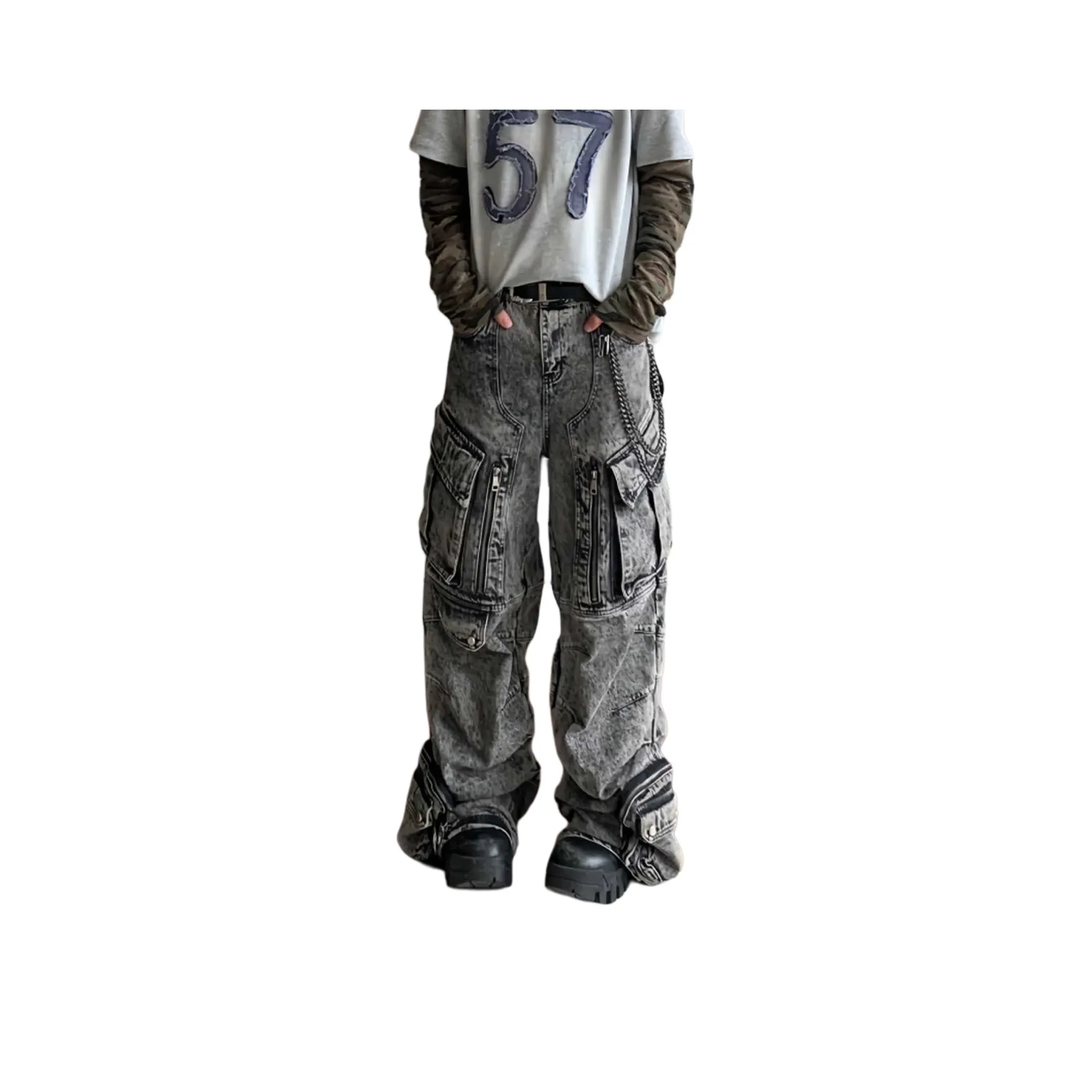 Джинсы MORii - это стильные серые джинсы с карго-кроем, выполненные из высококачественных материалов. Они имеют умеренную толщину и не растягиваются, что делает их идеальными для повседневной носки. Эти джинсы с рваными элементами и патчами добавляют оригинальности в любой образ.