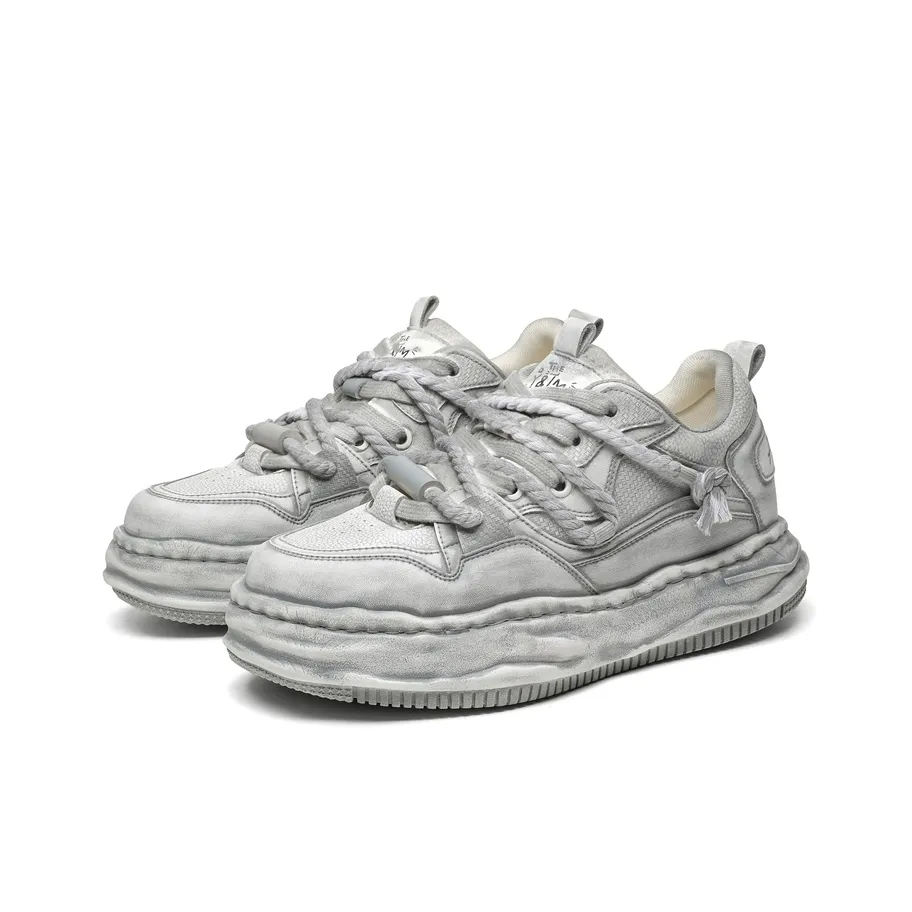KUNGFUDEER Эстетика состаривания Низкий топ Кроссовки для скейтбординга Мужские Белый Серый