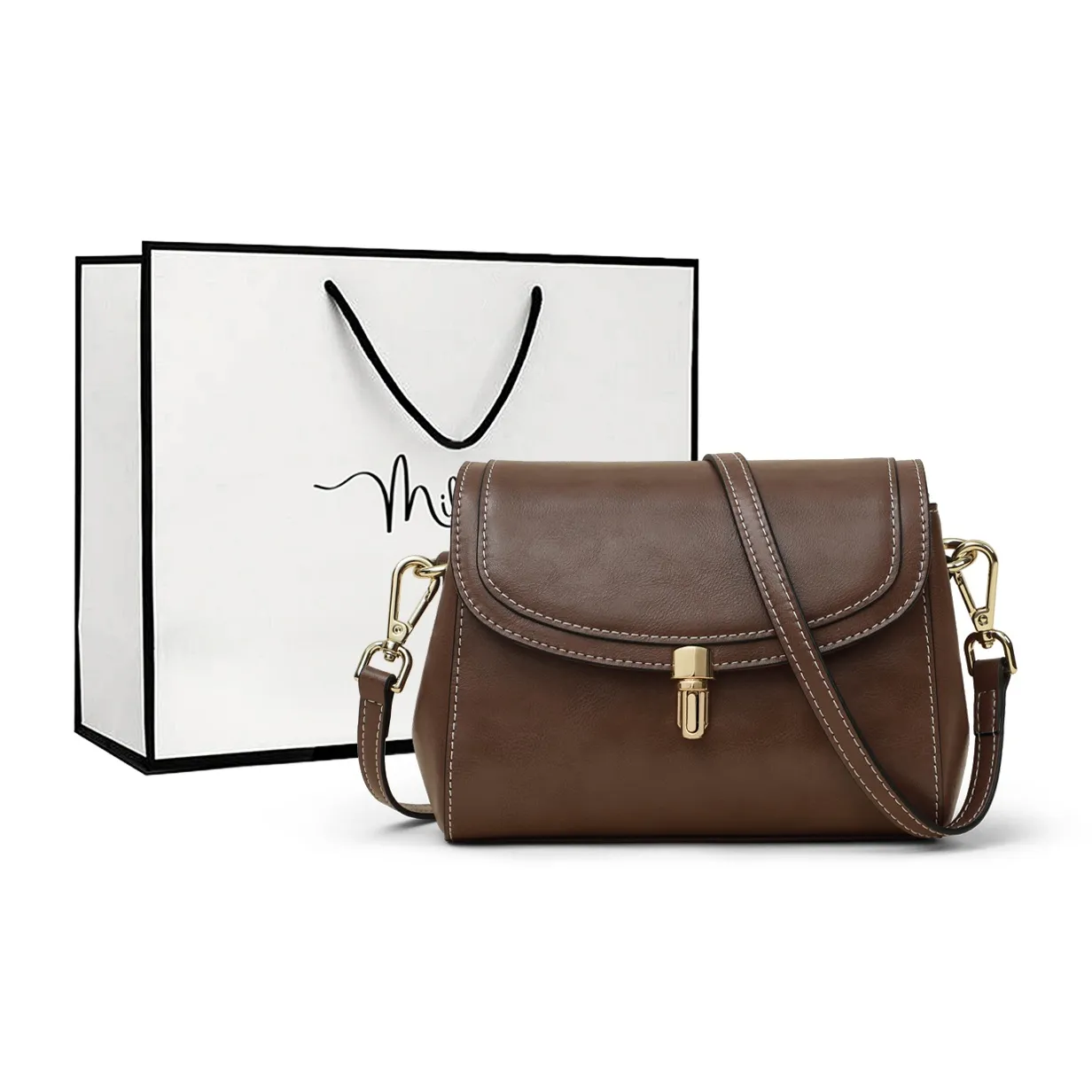 MILLIE'S Сумка через плечо из коровьей кожи маленькая квадратная сумка стандартная женская кофейного экрю карамельного цвета