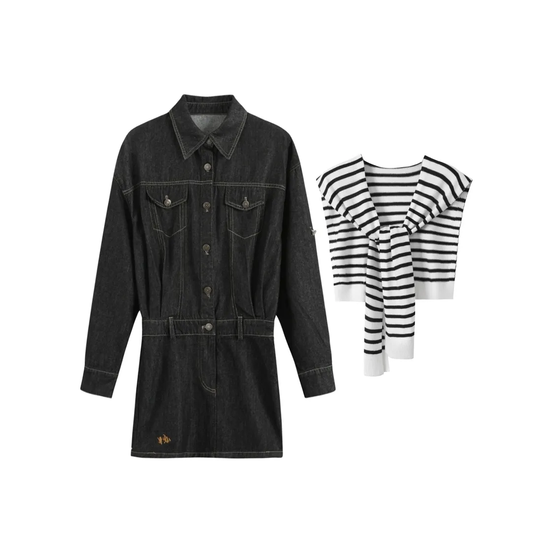 Платье AINUOERMY - это стильный выбор для осени и зимы. Изготовлено из смеси денима и полиэстера, оно имеет обычные рукава и высокую талию. Платье с полосатым узором добавляет оригинальности в любой образ.