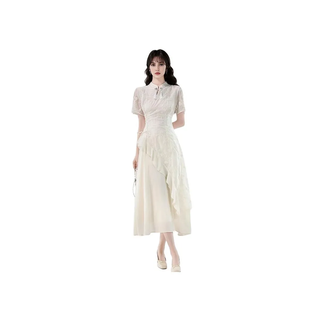 YICHEN Абрикос Женские Ципао - это элегантное платье, которое идеально подходит для летних мероприятий. Сшитое из 100% полиэстера, оно обеспечивает комфорт и стиль. Платье с длинным кроем и модным дизайном, идеально подходит для особых случаев.