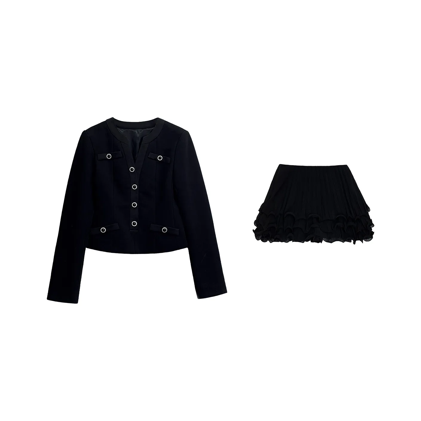 PAZZO Черная Куртка+Юбка Женские Комплекты с Юбкой