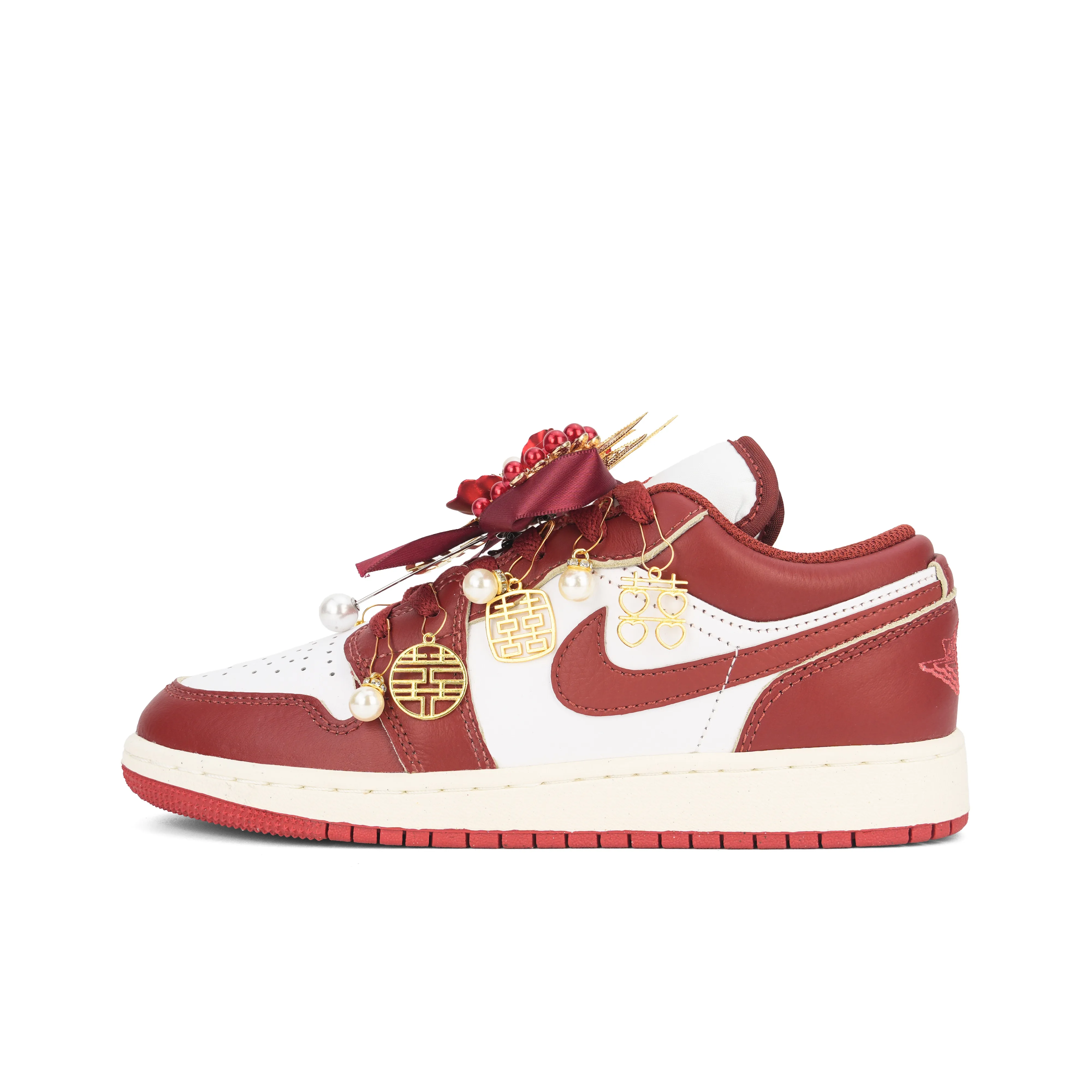 Jordan Air Jordan 1 Wedding Обувь Амортизация Износостойкий Низкий Топ Винтажные Баскетбольные Кроссовки Женские Золото Красный