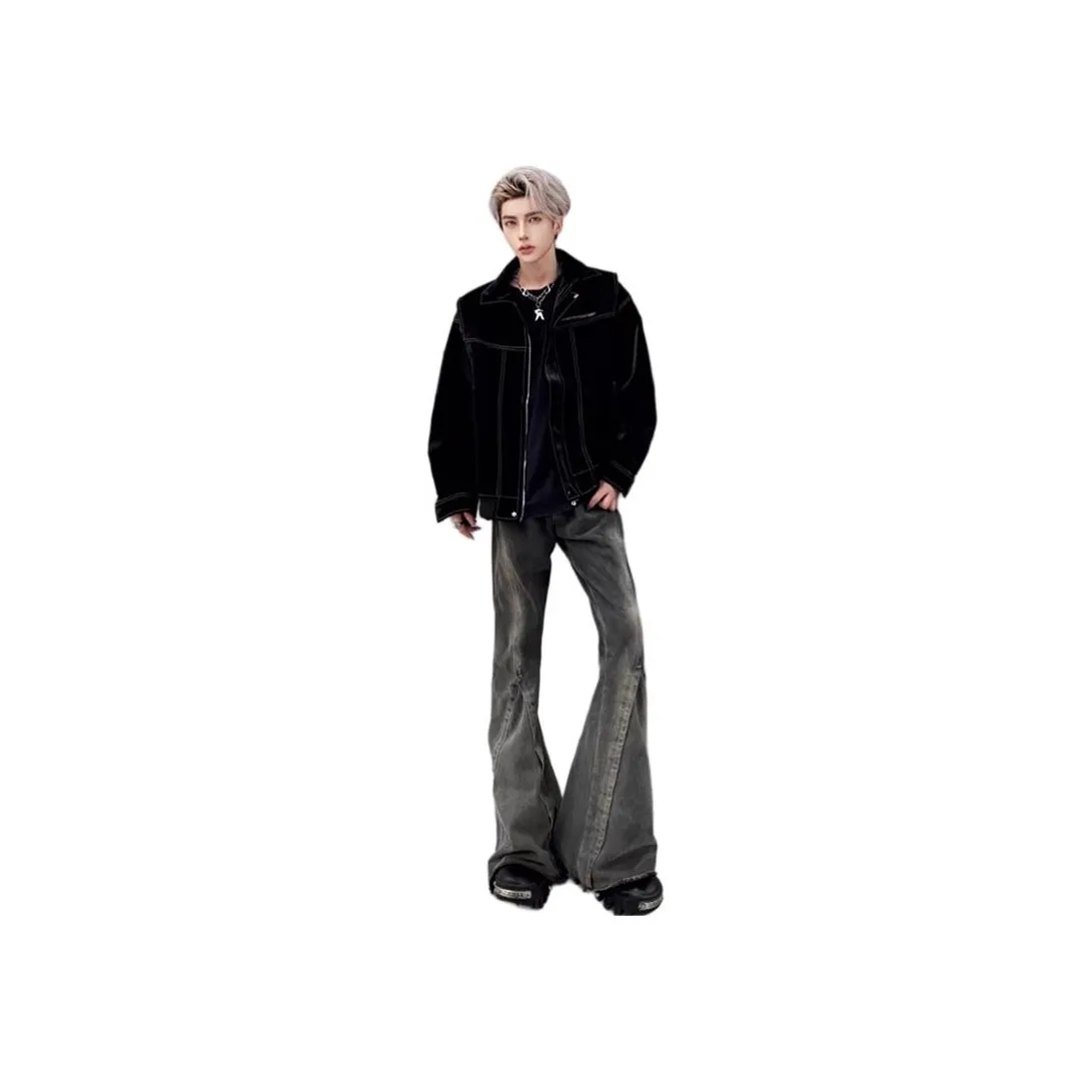 HEIYIXIANSHENG Синий Мужской Джинсы - Эти синие флейр-джинсы от HEIYIXIANSHENG предлагают стильный и современный вид. Изготовленные из хлопка с добавлением стрейча, они обеспечивают комфорт и свободу движений. Средняя посадка и застежка на молнии делают их удобными для повседневного использования. Эти джинсы легко комбинируются с различными верхами и обувью.