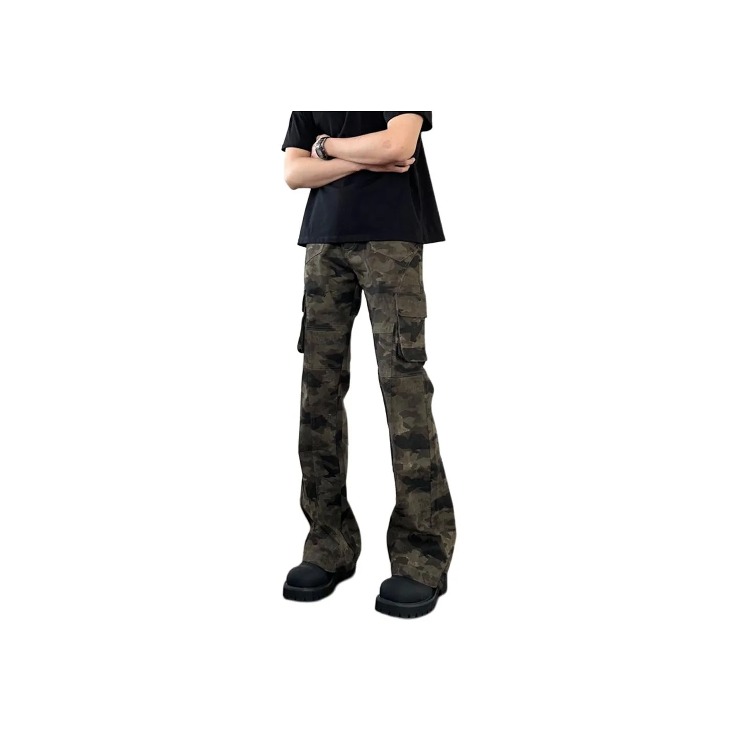TINA GIA Камуфляж Мужские Джинсы - Эти камуфляжные флейр-джинсы от TINA GIA предлагают уникальный и модный вид. Изготовленные из смеси хлопка и полиэстера, они обеспечивают комфорт и стиль. Средняя посадка и застежка на молнии делают их удобными для повседневного использования. Эти джинсы идеально подходят для создания стильного образа.