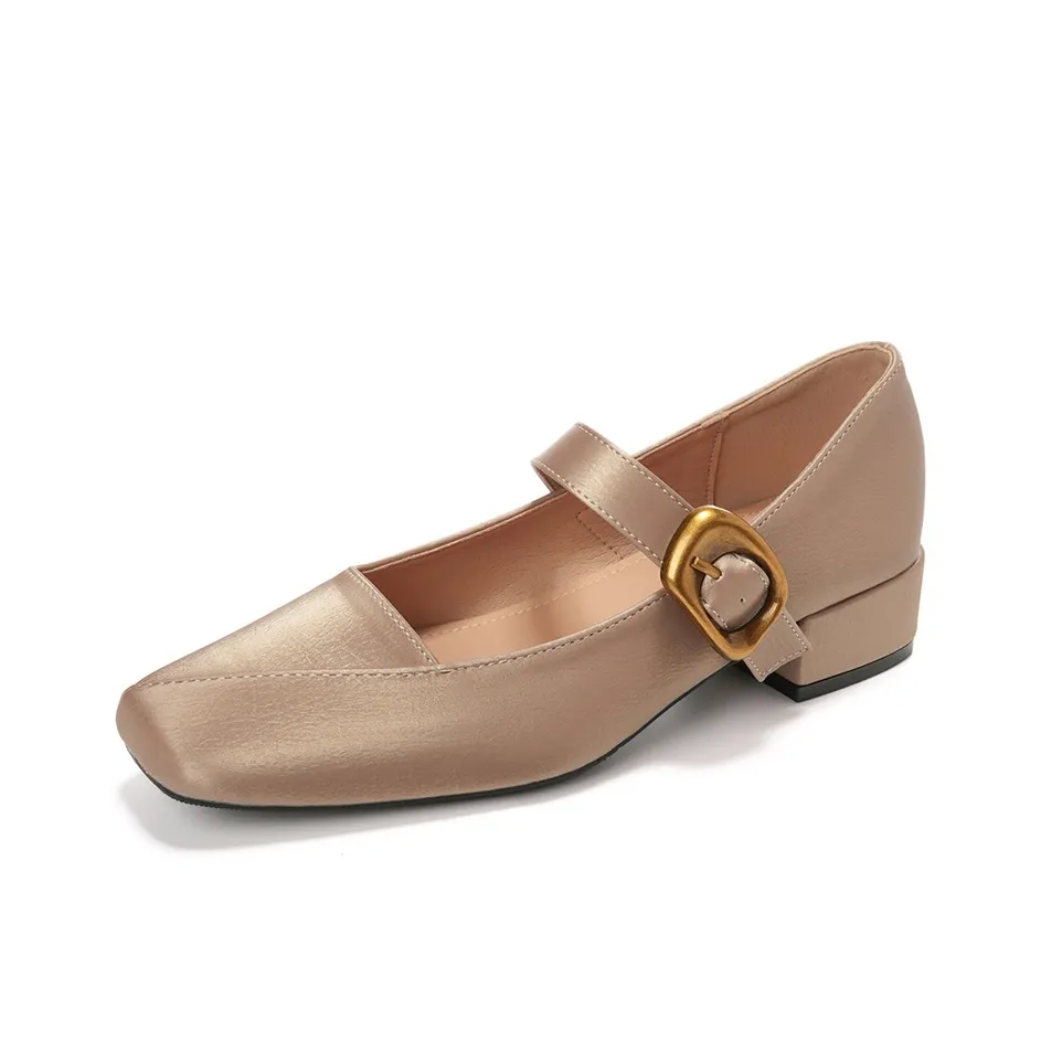Lan Miao Грубый каблук Мэри Джейн Туфли Женские Абрикос