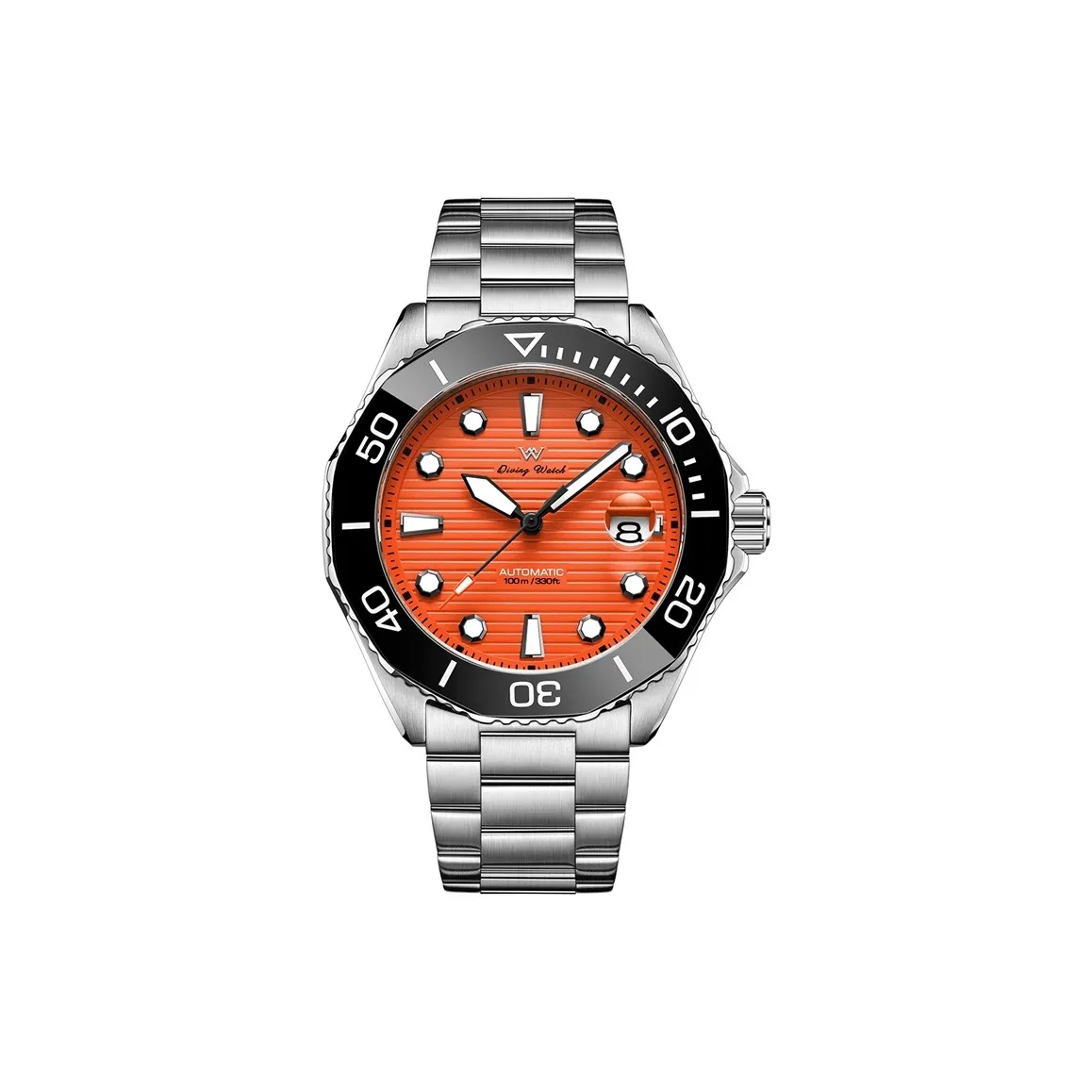 Welly Merck Автоматические механические часы для мужчин, 43 мм, оранжевый - это яркие и стильные часы с автоматическим механизмом и оранжевым циферблатом. Они имеют водонепроницаемость до 100 метров и стильный стальной ремешок.