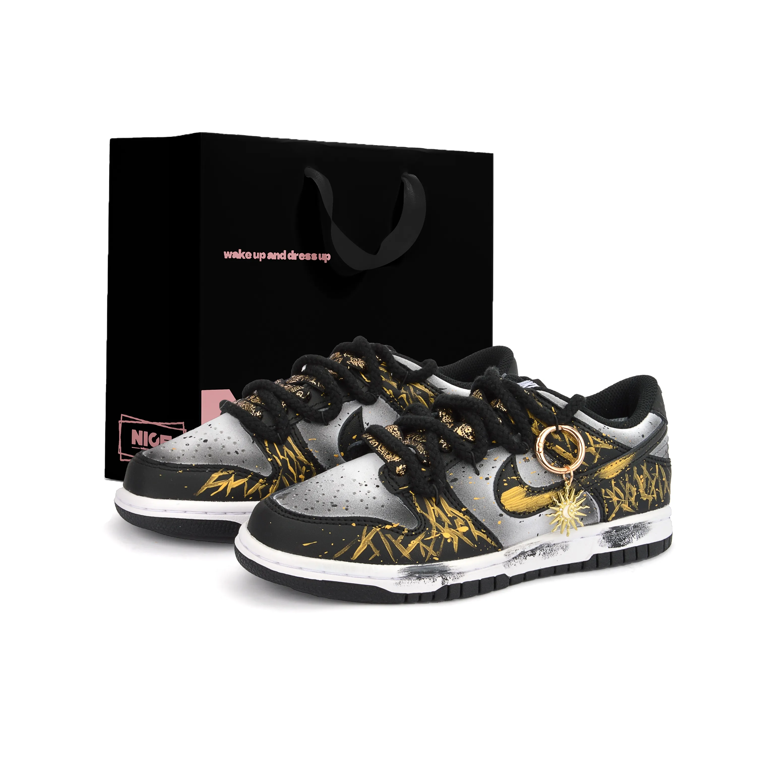 Nike Dunk Устойчивые к истиранию Низкие Кроссовки для скейтбординга Унисекс Черный Золотой