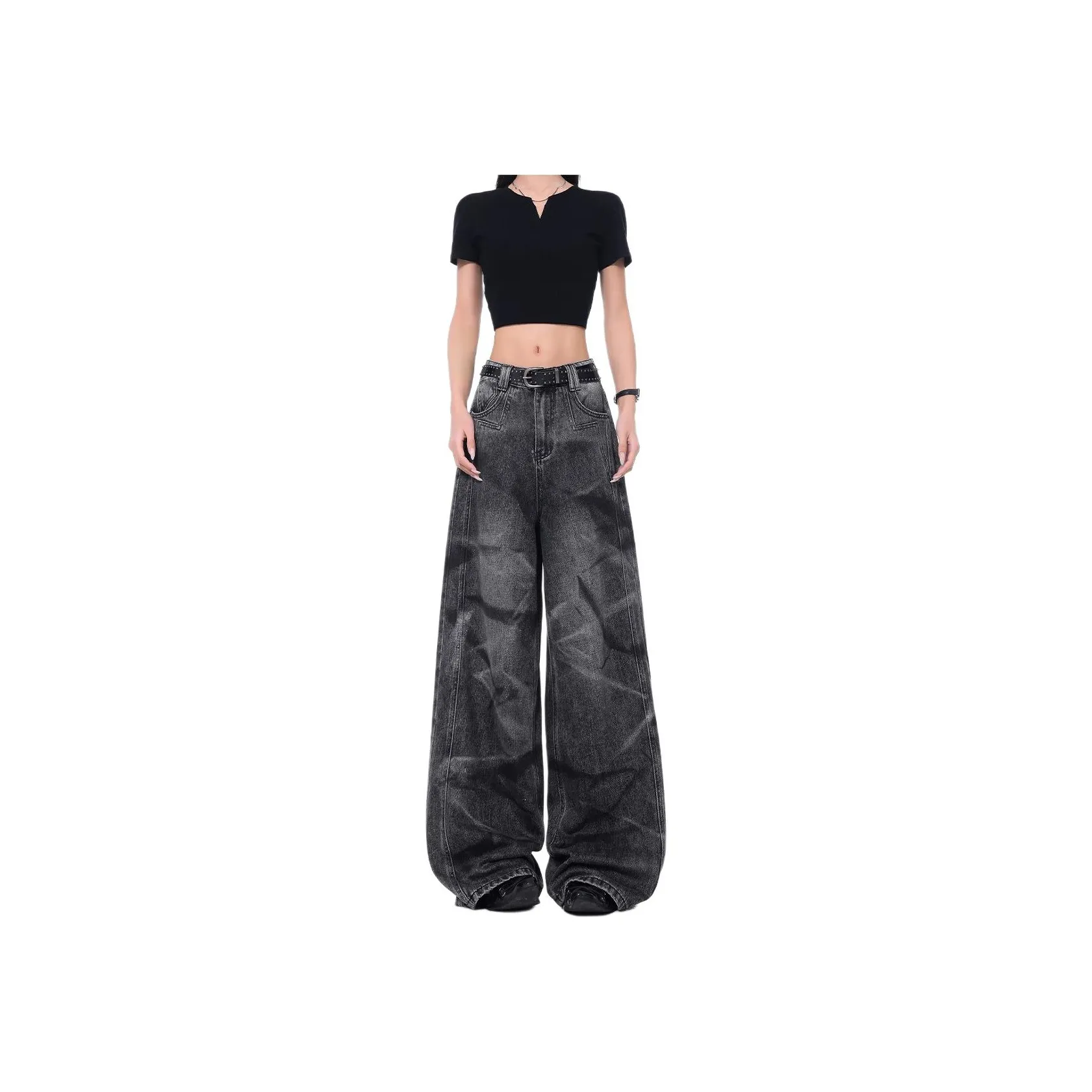 Джинсы MUCCHIC - это широкие брюки с низкой талией, выполненные из смеси хлопка и полиэстера. Они имеют застежку на молнии и стильные потертости, что делает их идеальными для создания модных образов в осенний и зимний сезоны.