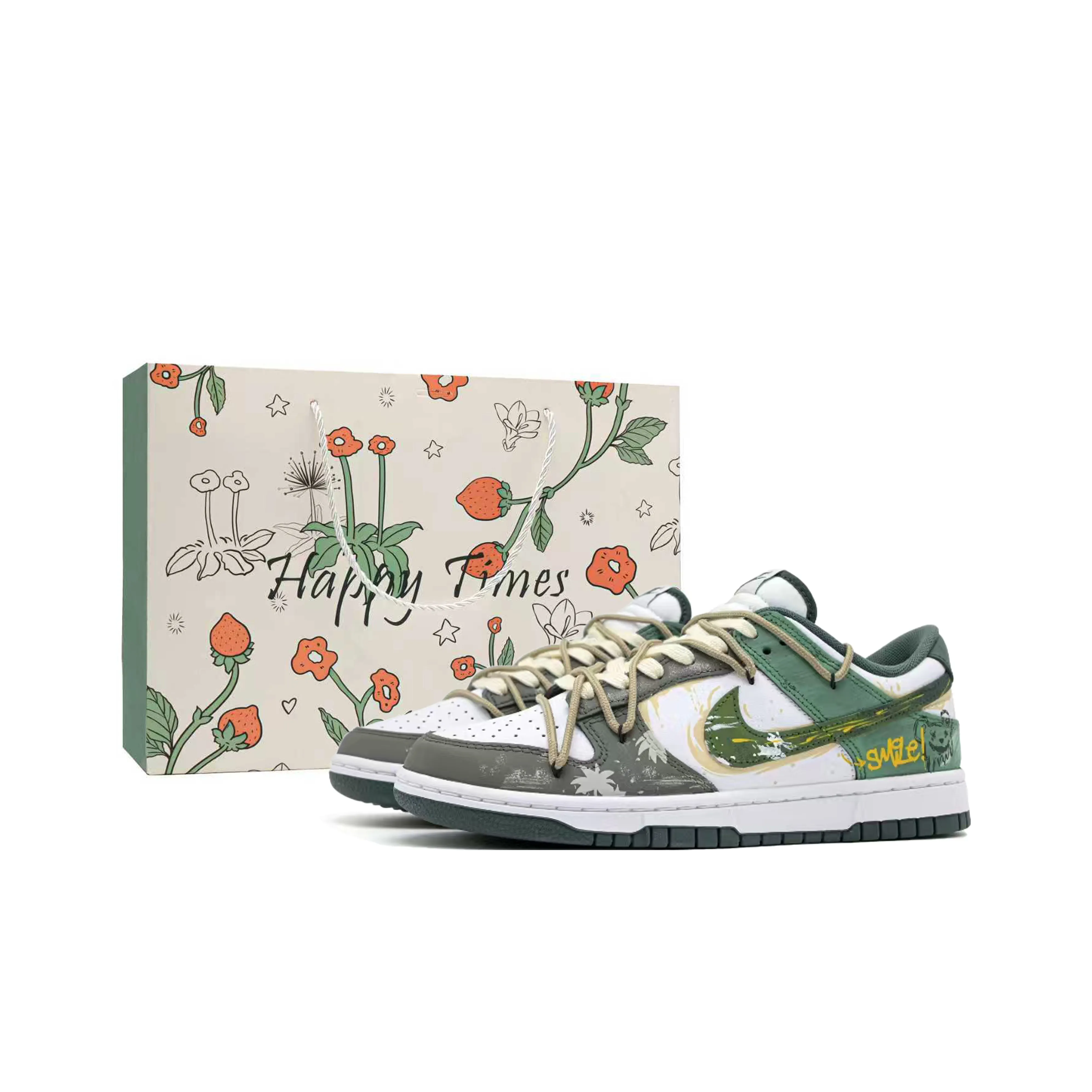 Nike Dunk Кокос Зеленый Медведь Коробка Устойчивый к истиранию Дышащий Увеличение Высоты Низкие Кроссовки для Скейтбординга Унисекс Серый Зеленый