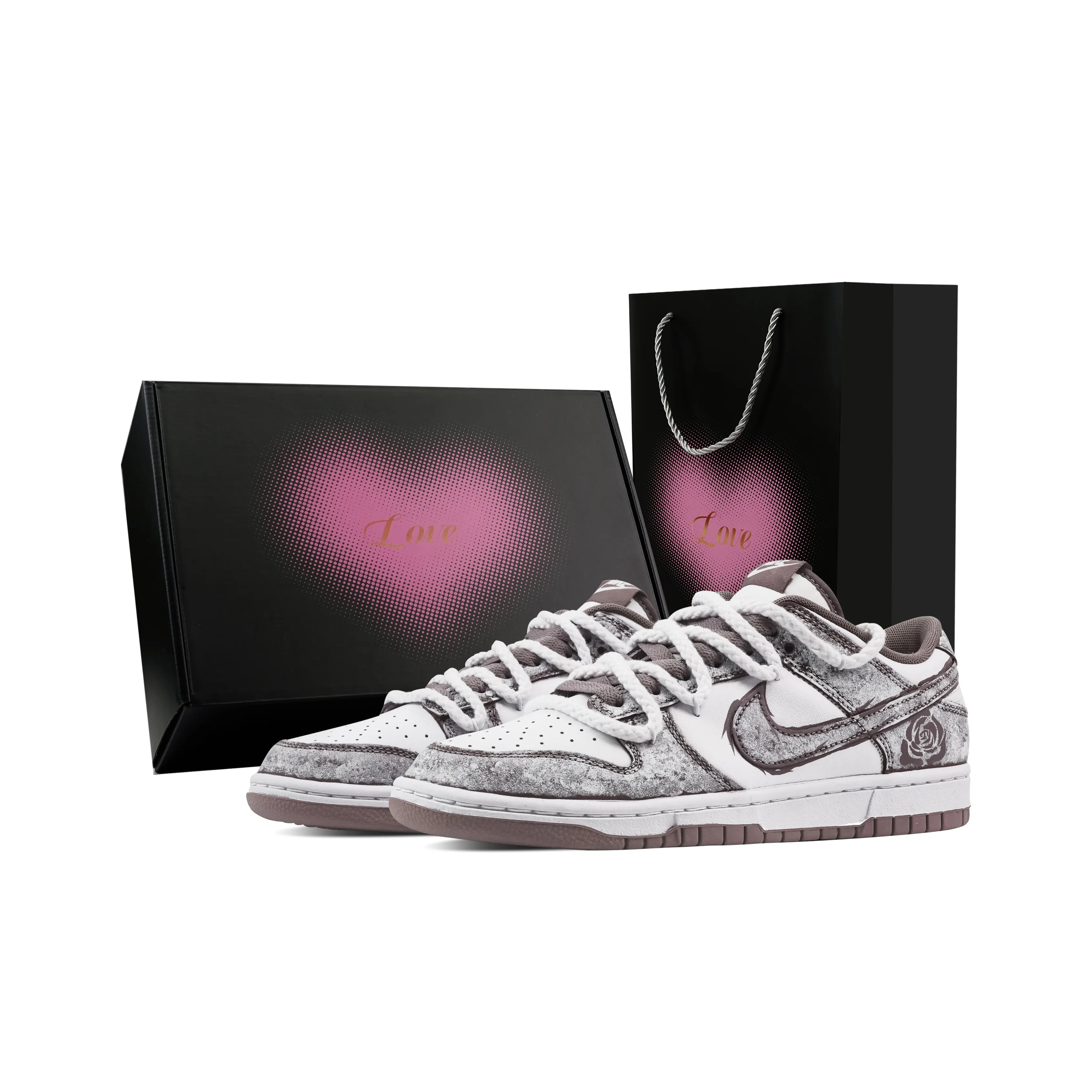 nike Dunk Шип Розовый Коробка с посланием любви устойчивые к абразиву низкие скейтбордические кеды унисекс серо-фиолетовые