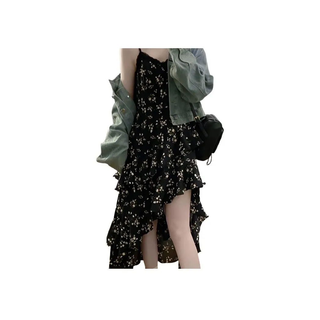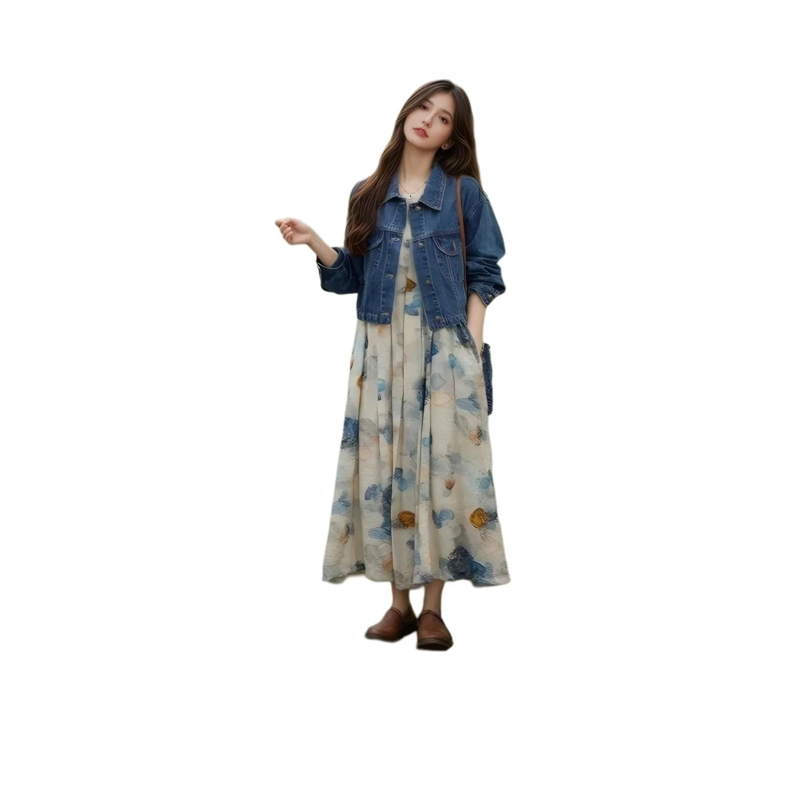 DGMZ Джинсовая куртка Цветочное платье Комплект с юбкой Женские комплекты
