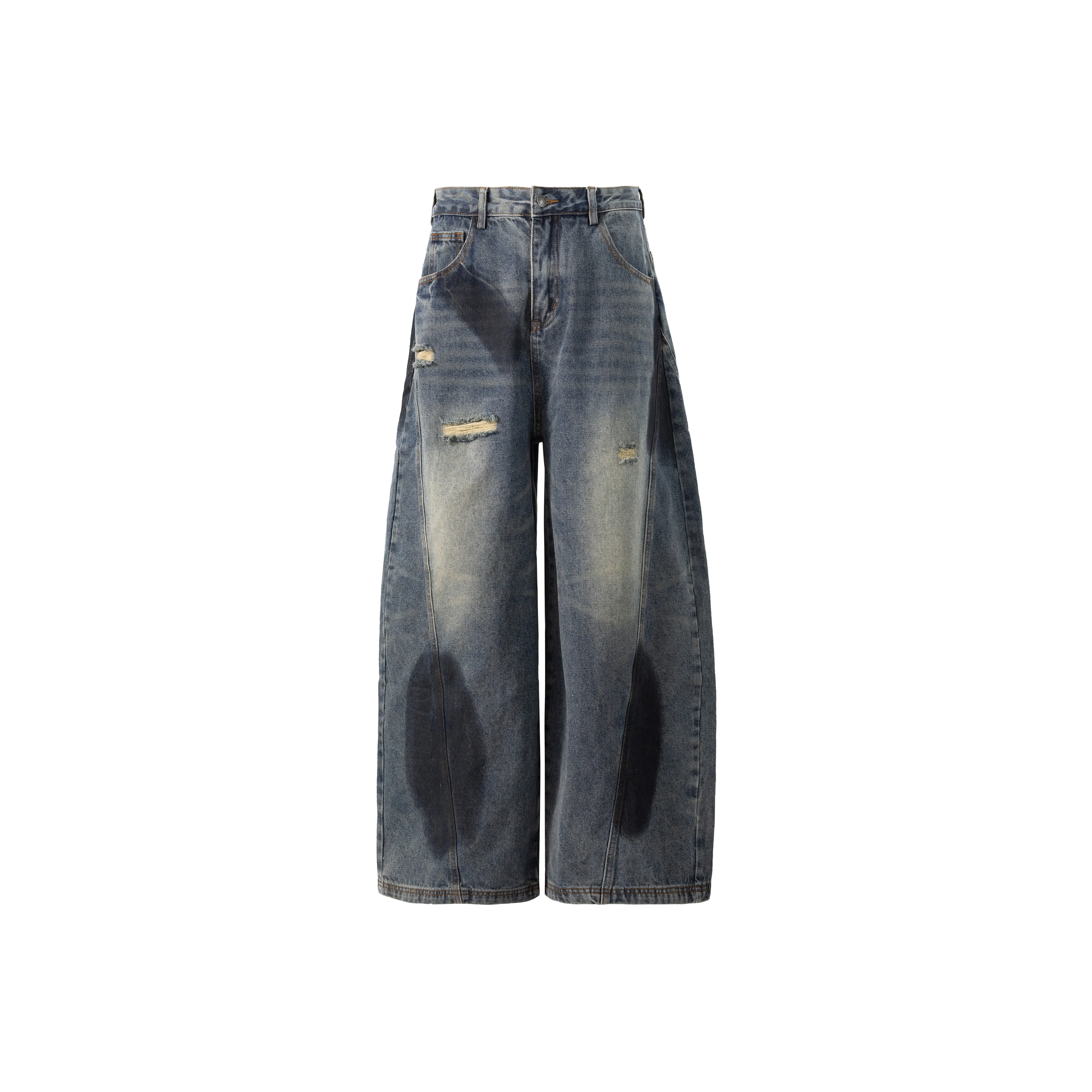 MAXDSTR Винтажные синие унисекс джинсы - это идеальный выбор для любителей рваного стиля. Состав из 85% хлопка и 15% полиэстера обеспечивает комфорт и стиль. Эти джинсы с рваными элементами и средней талией подойдут для создания модного образа.