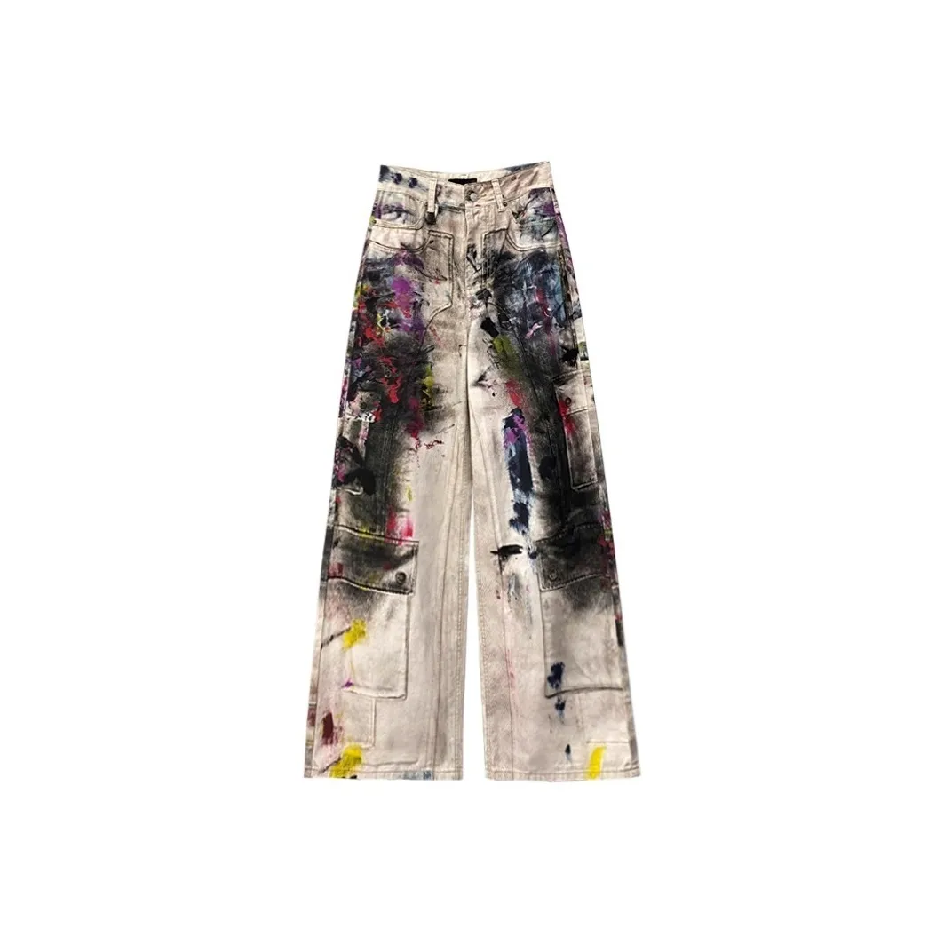 KNOCKSPARK Джинсы Унисекс с Граффити и Разрисованным Дизайном