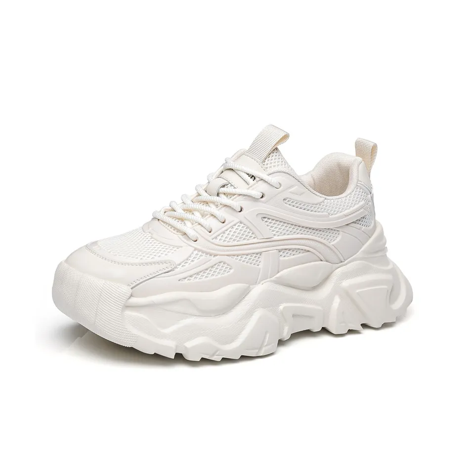 Kangaroo Head Slip-Resistant and Breathable Low Top Chunky Sneakers - это идеальный выбор для тех, кто ищет стиль и комфорт. Эти кроссовки выполнены из сетчатого и микрофибрового материала, что обеспечивает отличную воздухопроницаемость. Платформенная подошва гарантирует удобство при ходьбе, а противоскользящая функция делает их безопасными для использования в любых условиях. Они идеально подходят для весны и осени, а их стильный белый цвет с бежевыми и черными акцентами легко сочетается с любым нарядом.