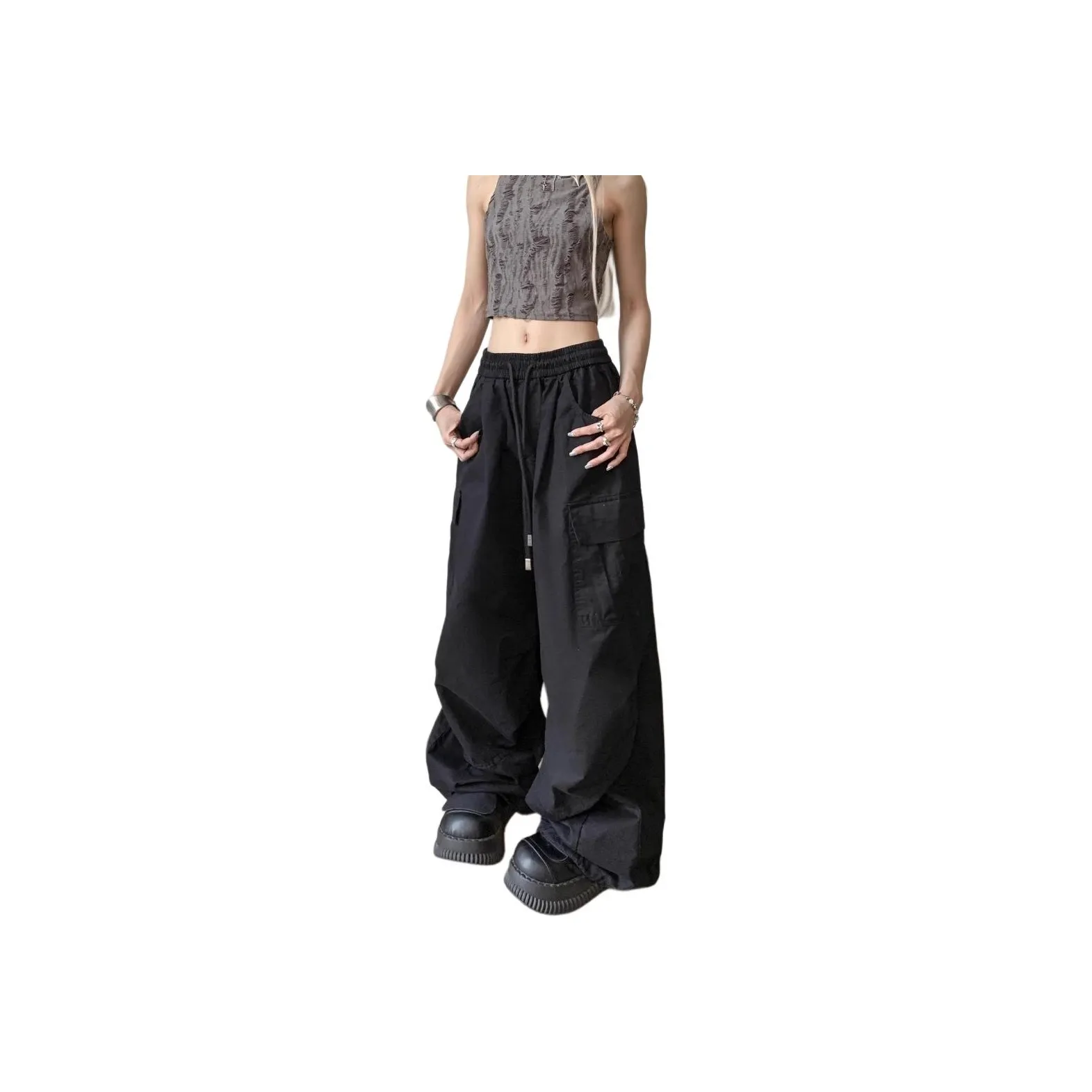 Брюки MUCCHIC - это стильные брюки карго с эластичным поясом, которые идеально подходят для весны и осени. Изготовленные из полиэстера, они обеспечивают комфорт и свободу движений. Широкие брючины и стильный шнурок придают им модный вид, а универсальный черный цвет позволяет легко сочетать их с различными топами.