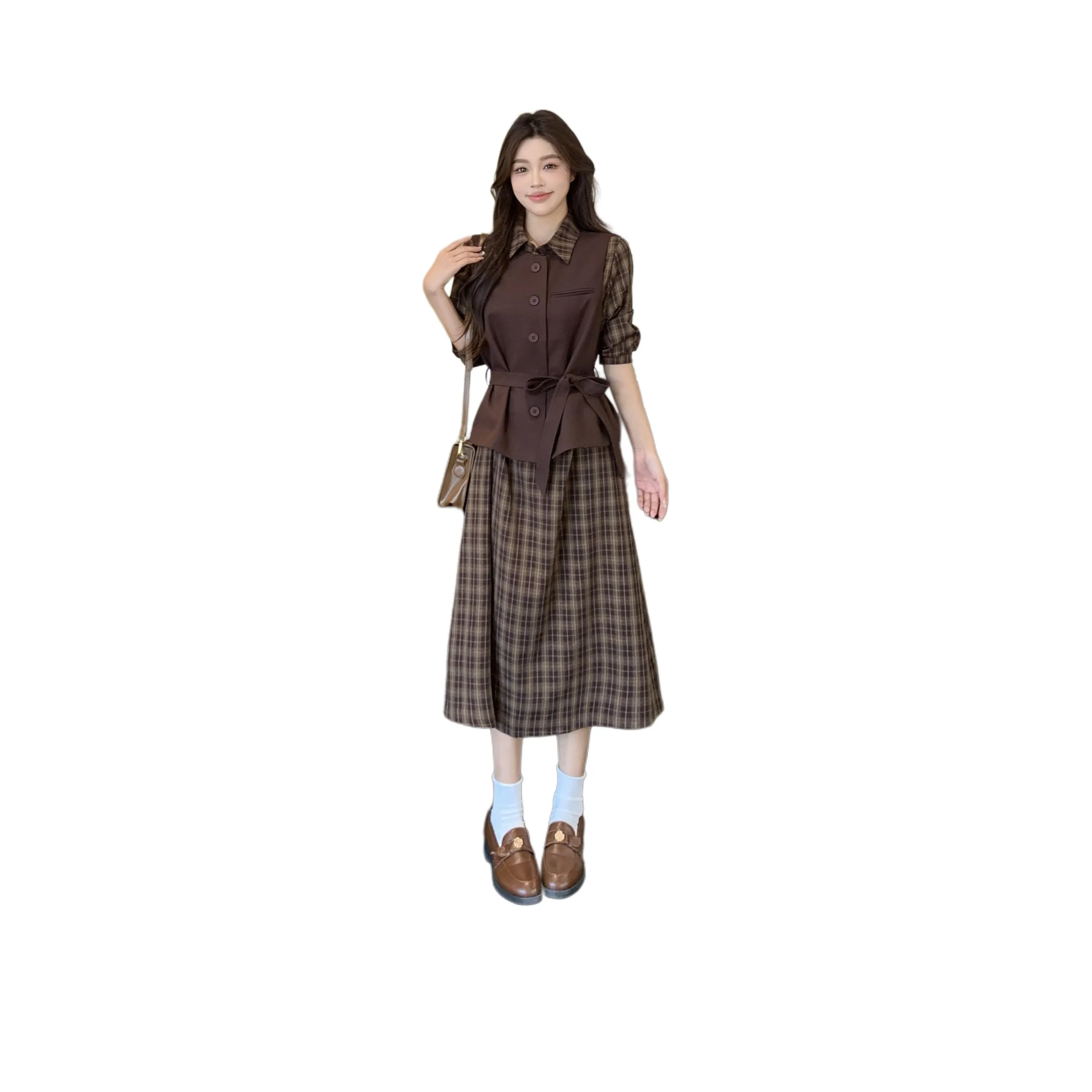 Комплект от LADYXIEXIE в клетку - это стильный выбор для осенних мероприятий. Изготовленный из полиэстера, он обеспечивает комфорт и стиль. Этот комплект легко комбинируется с различными аксессуарами и обувью.