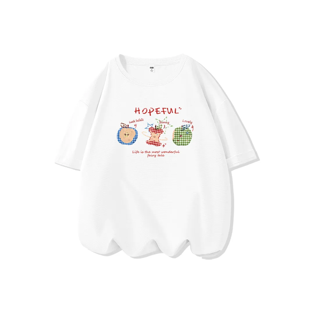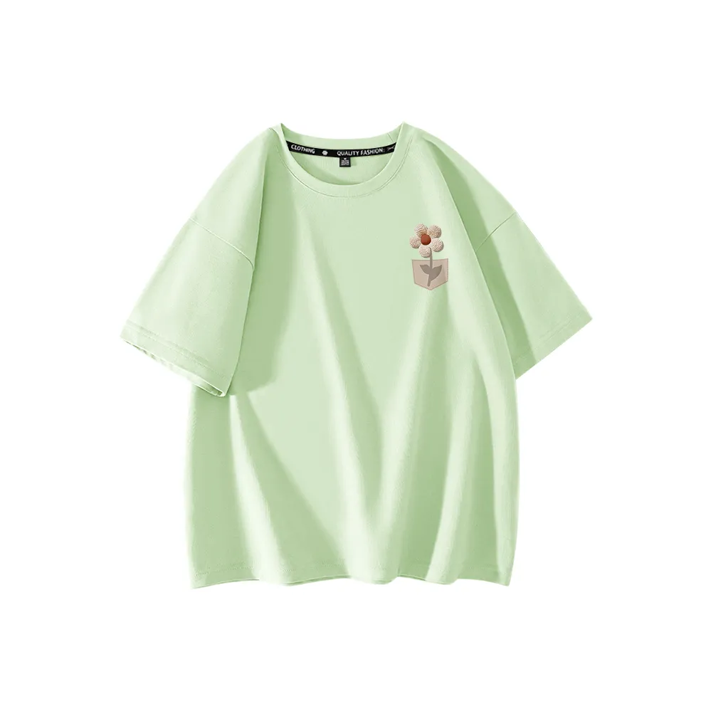 Эта футболка от Cotton также изготовлена из 100% хлопка и имеет легкий мультяшный принт. Она дышащая и идеально подходит для жаркой погоды. Прямой крой и обычные рукава делают ее универсальной для повседневного ношения. Легкость в уходе и стильный вид делают ее отличным выбором для любого гардероба.