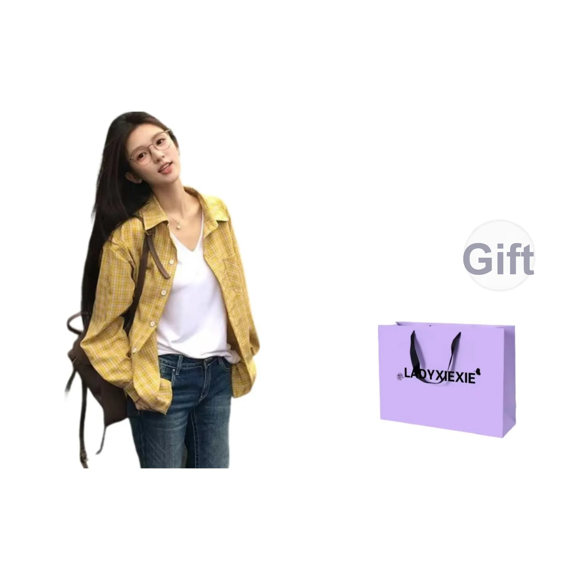 LADYXIEXIE Желтая клетка Женские рубашки