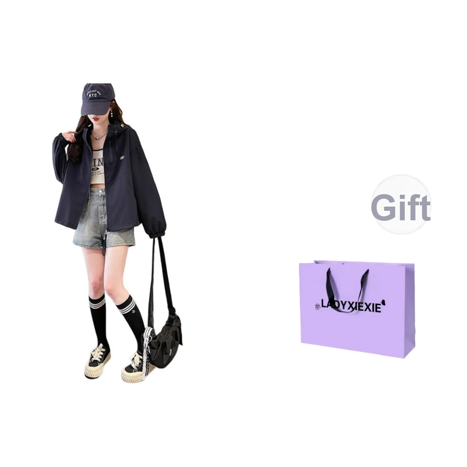 Куртка от LADYXIEXIE с капюшоном и молнией - это отличный выбор для весны и осени. С умеренной толщиной и стильным узором, она обеспечивает комфорт и защиту от холода.