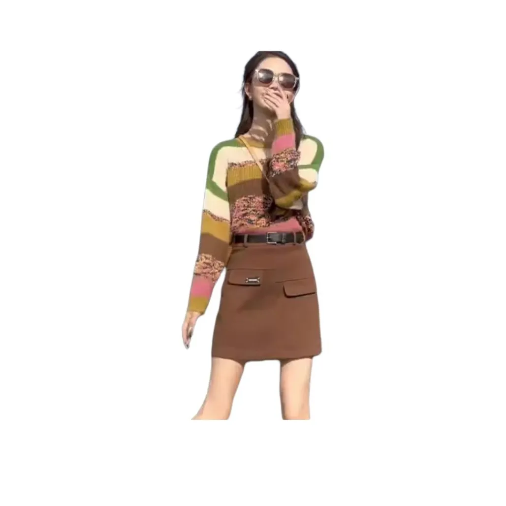 Еще один трикотаж от LADYXIEXIE, который отличается полосатым узором и многоцветностью. Он подходит для весны и осени, обеспечивая стильный и яркий образ.