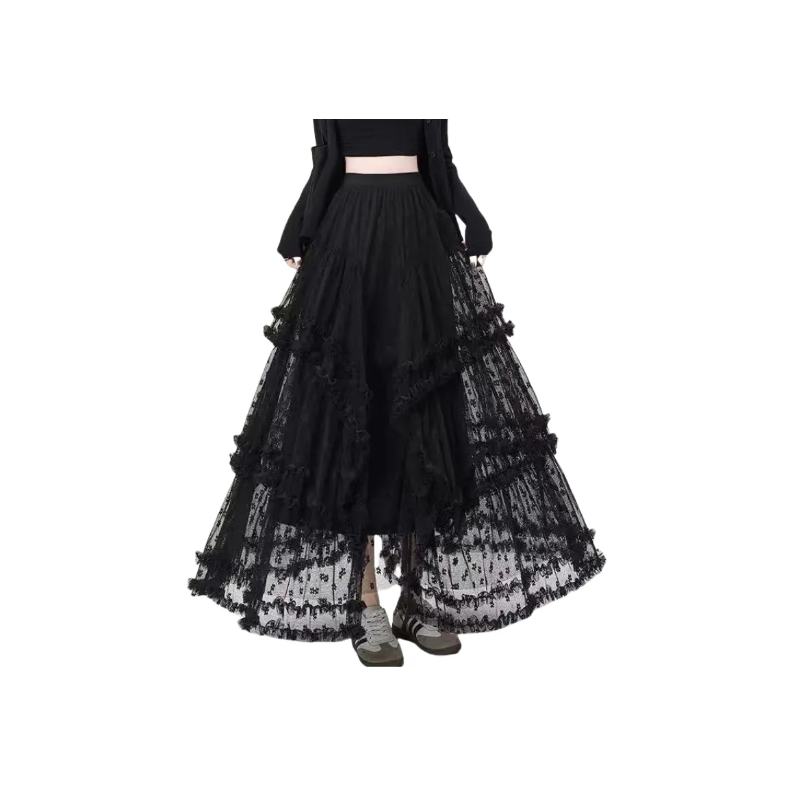 Ice Cream And Whale Повседневные короткие юбки Женские Черная многоуровневая юбка