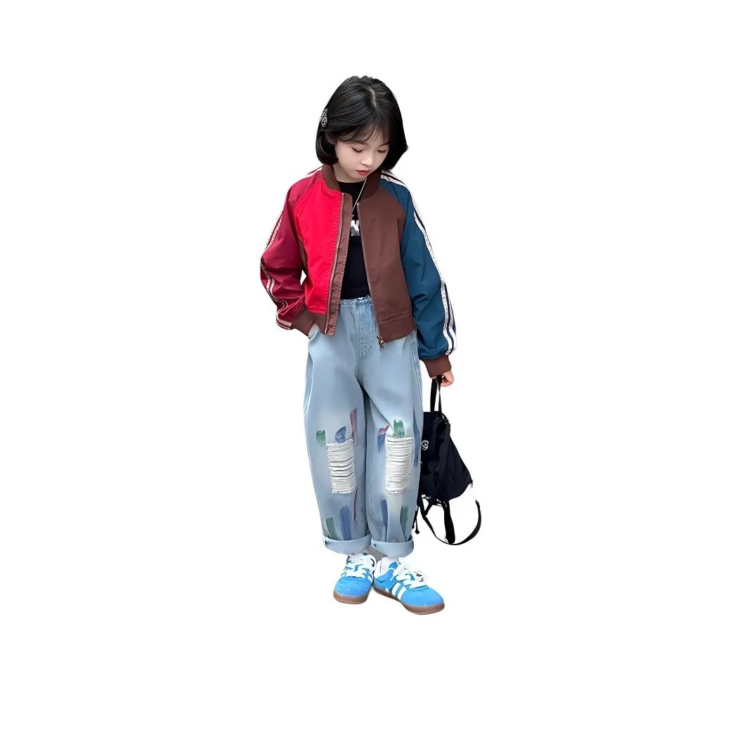 BaoLaXiaoJie Повседневный Спортивный Комплект Многоцветный Топ и Синие Джинсы Подростки
